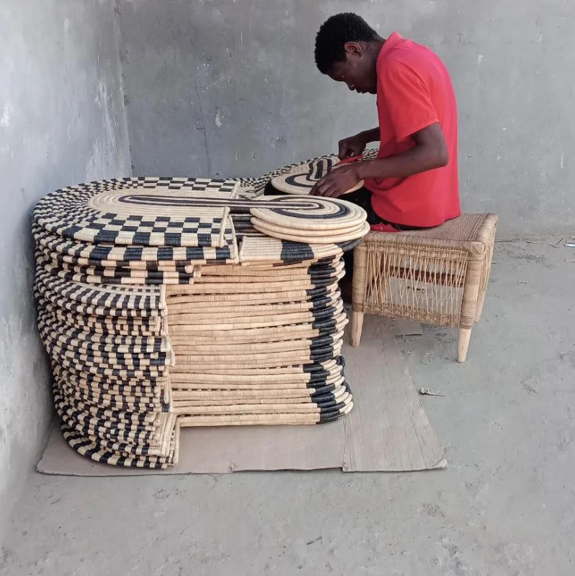Handwoven in Malawi from sustainably sourced palm leaves, these unique art pieces are created from traditional coil weaving techniques with bold, contemporary patterns. The female-owned artisan group that creates them blends traditional and modern looks, working with other female companies and designers globally to collaborate on products and patterns.