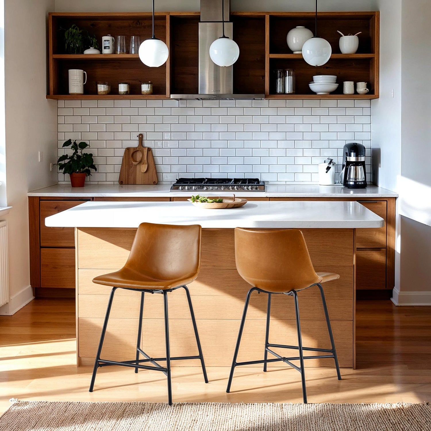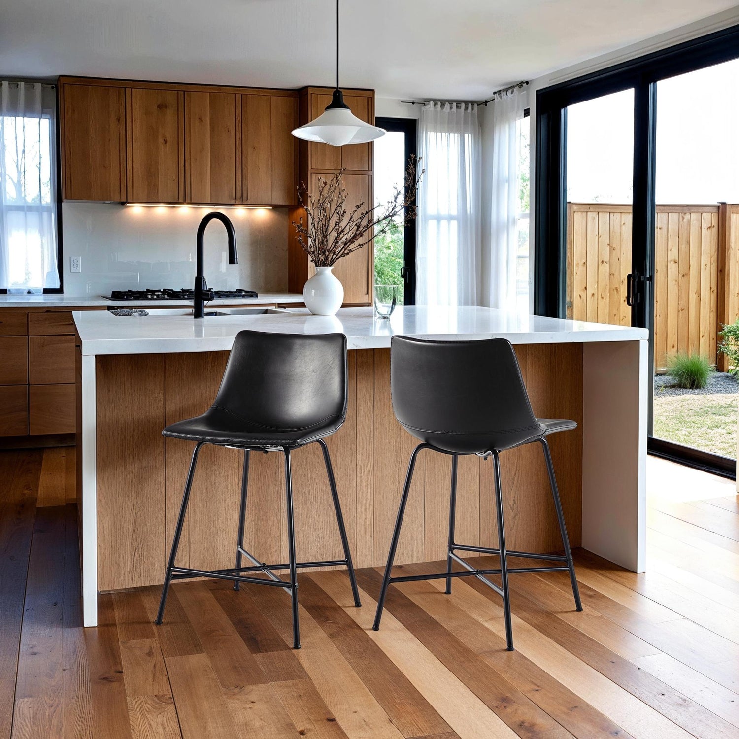 The Xuma Urban Industrial Seating Collection features two faux leather chairs or counter stools crafted with durable PU leather upholstery and a powder-coated steel X-base for stability and modern appeal. Adjustable foot levelers ensure balance on uneven surfaces, making them both functional and stylish additions to dining rooms, kitchen islands, or workspaces. Their streamlined design complements urban and industrial interiors while offering comfortable seating that is easy to maintain.