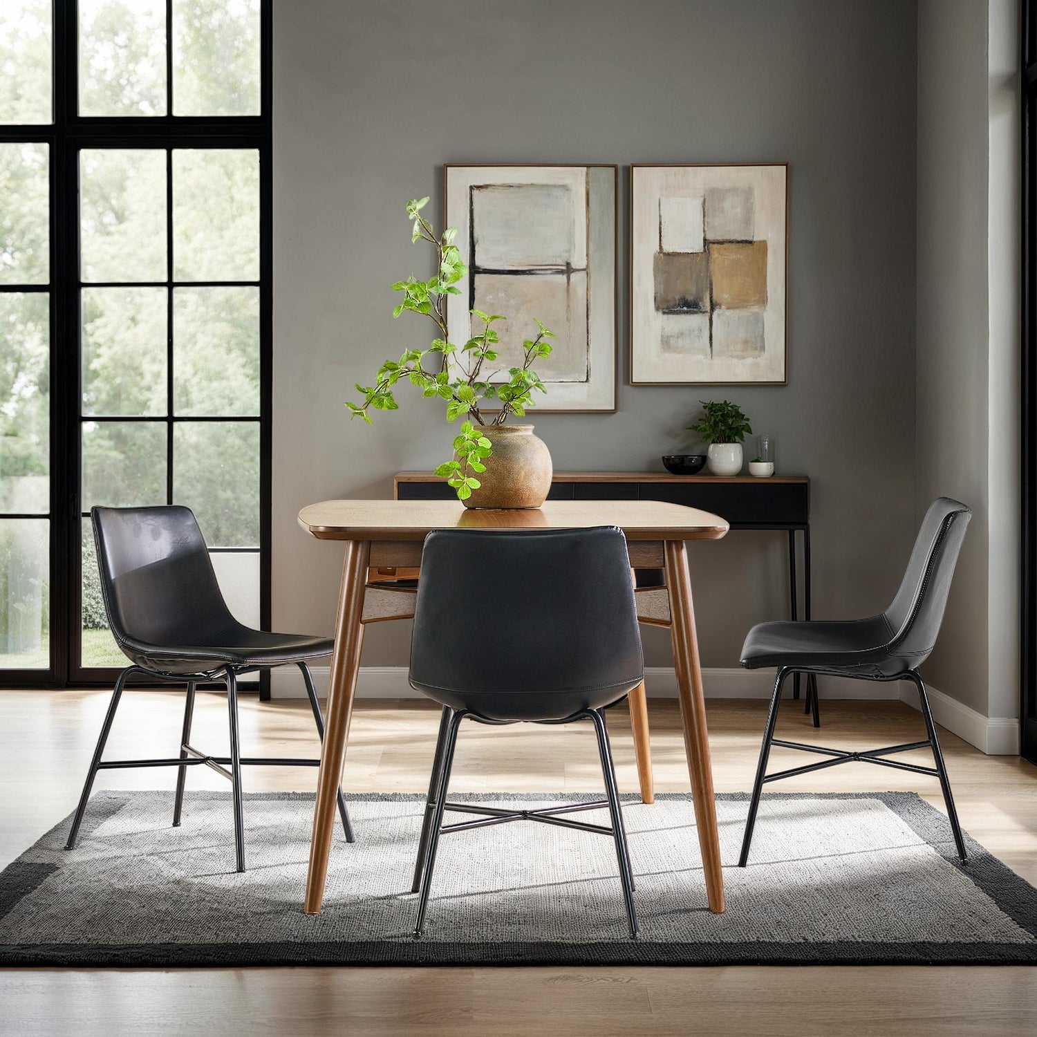 - Material: PU faux leather upholstery, powder-coated steel frame