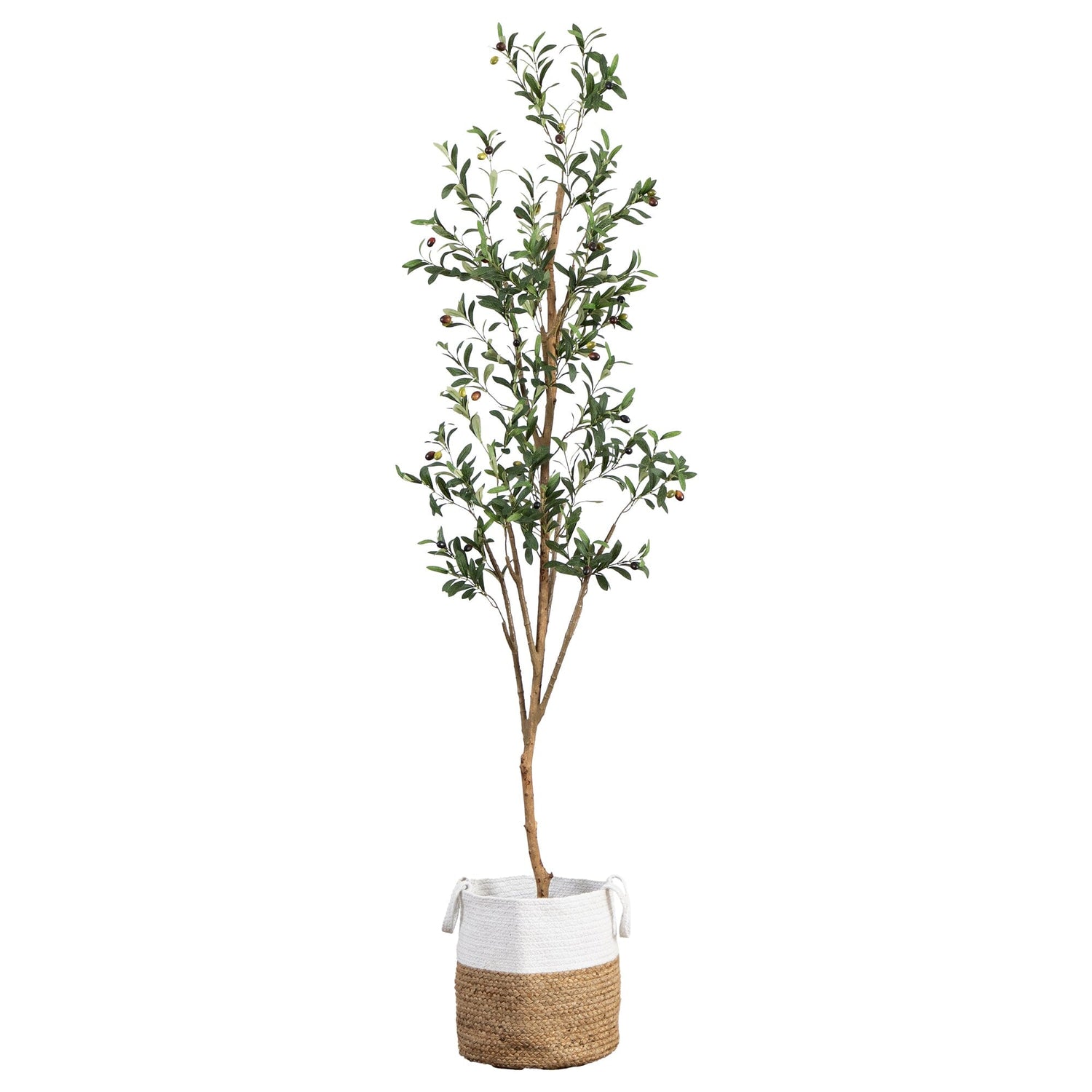 7’ Artificial Olive Tree with Natural Trunk and Handmade Jute Basket