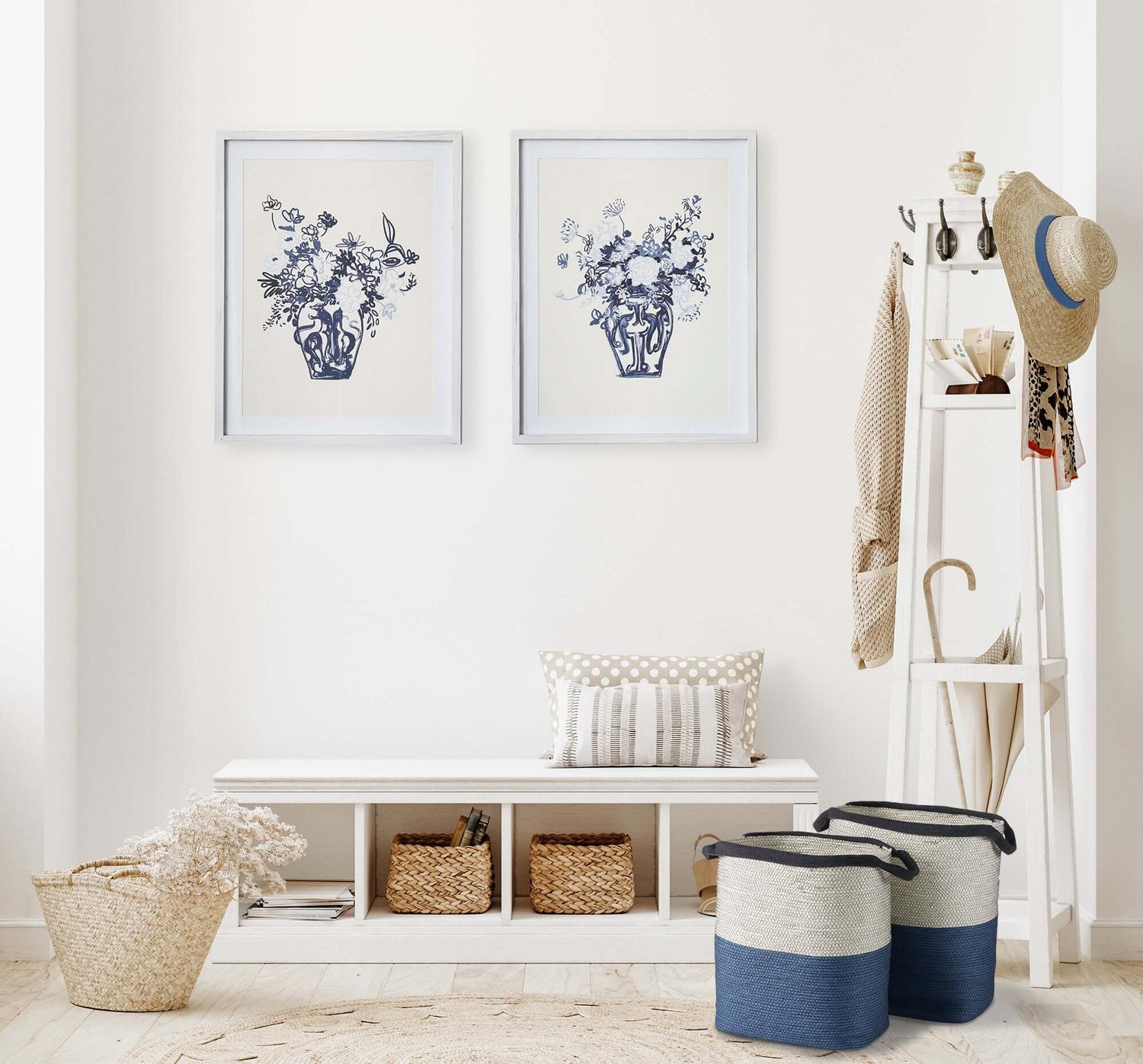 Bring breezy, seaside-inspired charm into your home with these coastal blue and natural woven storage baskets with handles. This versatile set of two combines timeless texture with modern coastal color, offering the perfect balance of beauty and function for everyday living.