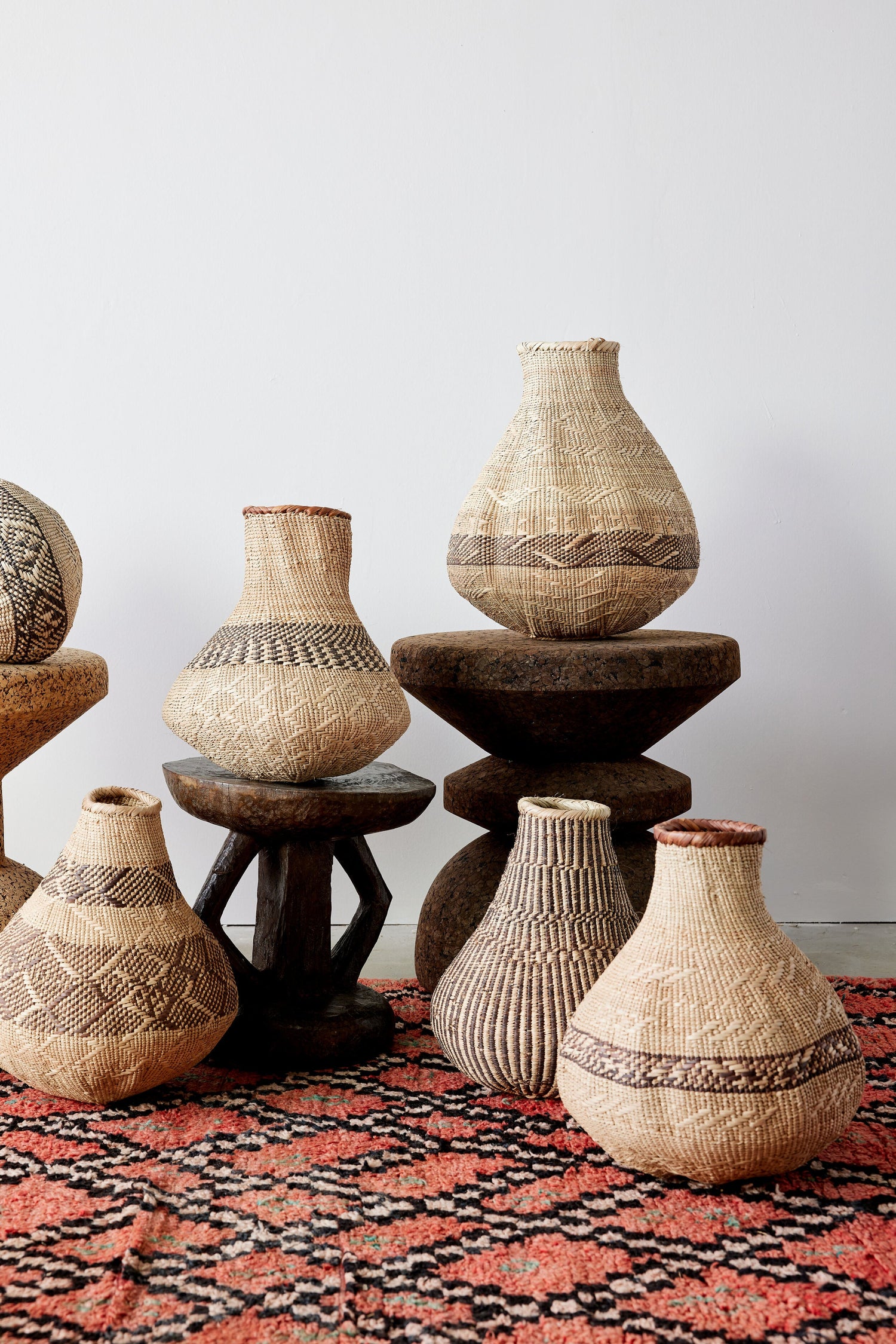 Transform your home with the authentic artistry of the Patterned Binga Nongo Gourd Woven Basket, expertly handwoven by skilled African artisans. These baskets, inspired by traditional grain storage and water-carrying gourds, introduce a captivating natural element to any interior. With a variety of sizes and patterns, they offer endless possibilities for creating distinctive and stylish groupings in your space.