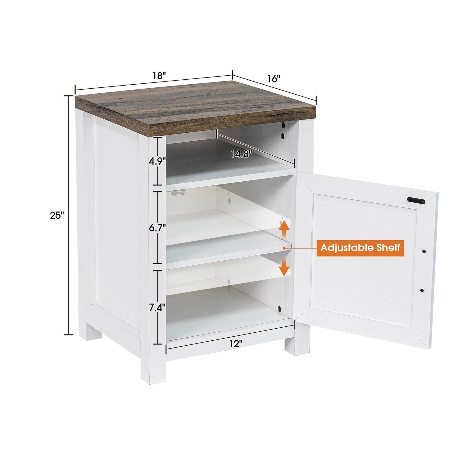 18" Solid Wood Farmhouse Nightstand for Bedroom in Brown, Grey, or White