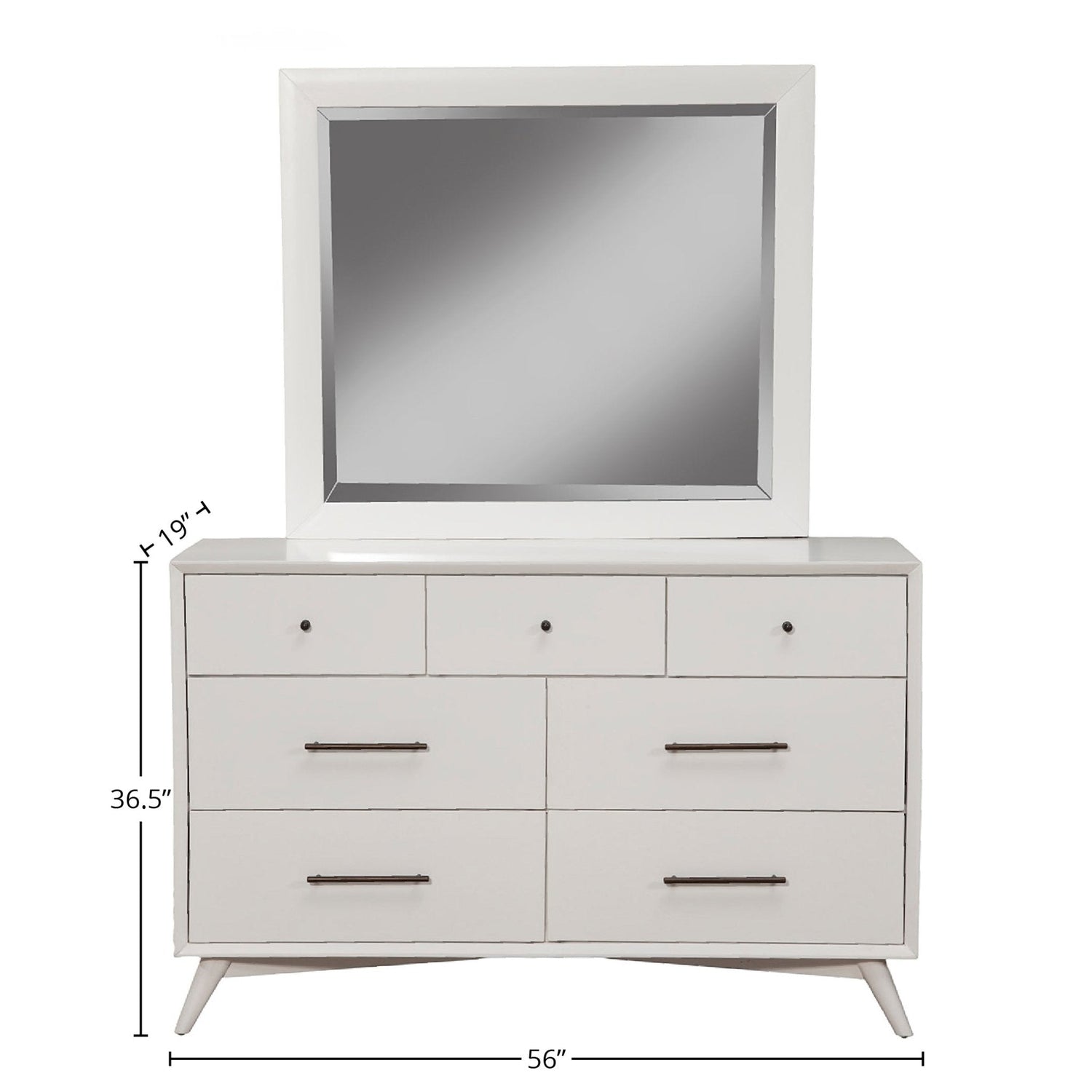 The Flynn collection features classic Mid-Century Modern lines. Its sturdy frames are constructed of sustainably sourced solid Mahogany. The case pieces offer roomy storage and are available in an Acorn or White finish.