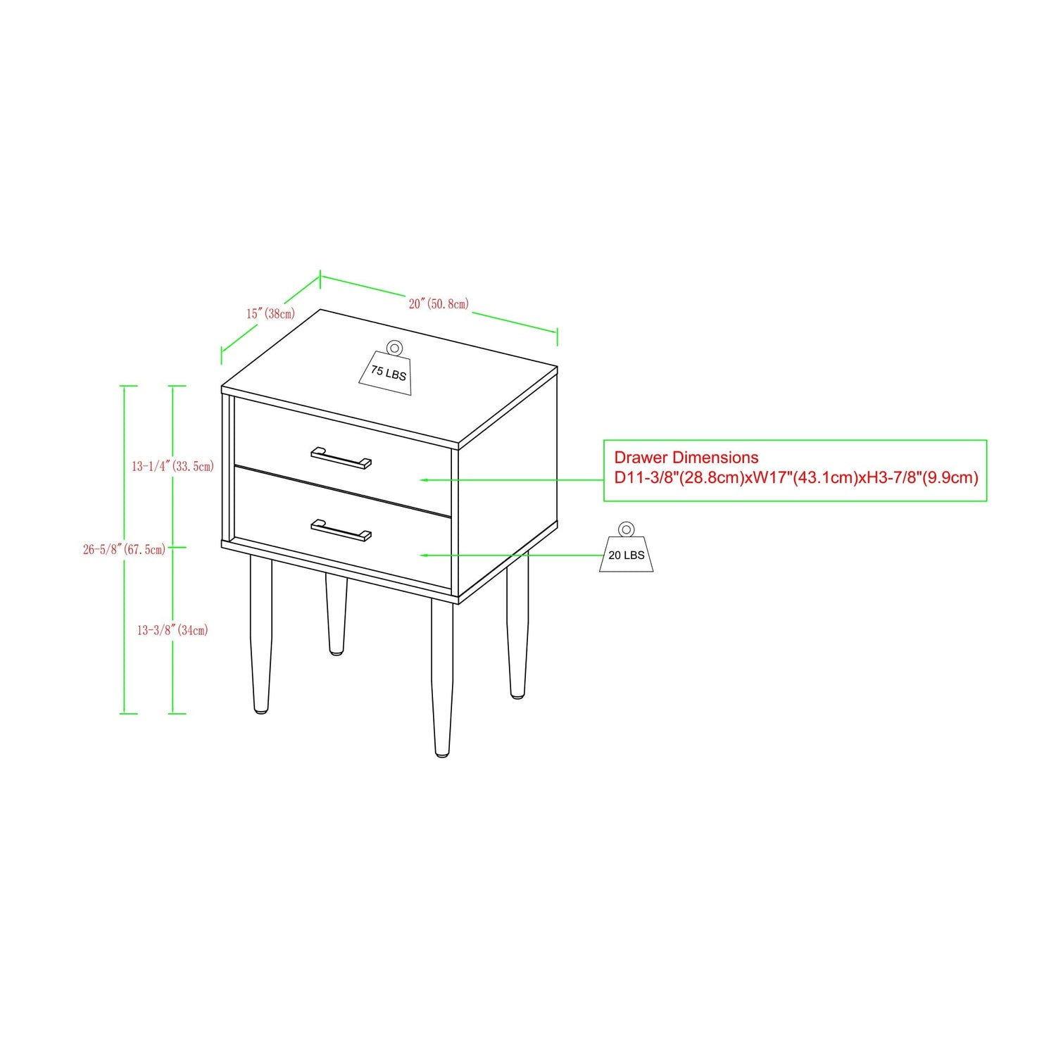 - Storage: Two drawers for organized space