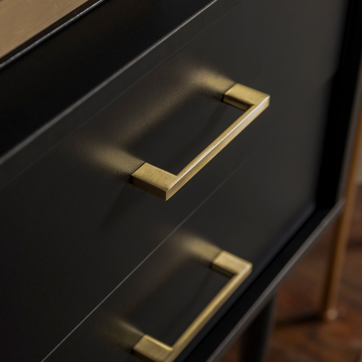 - Color/Finish: Natural wood tone with gold-accented handles