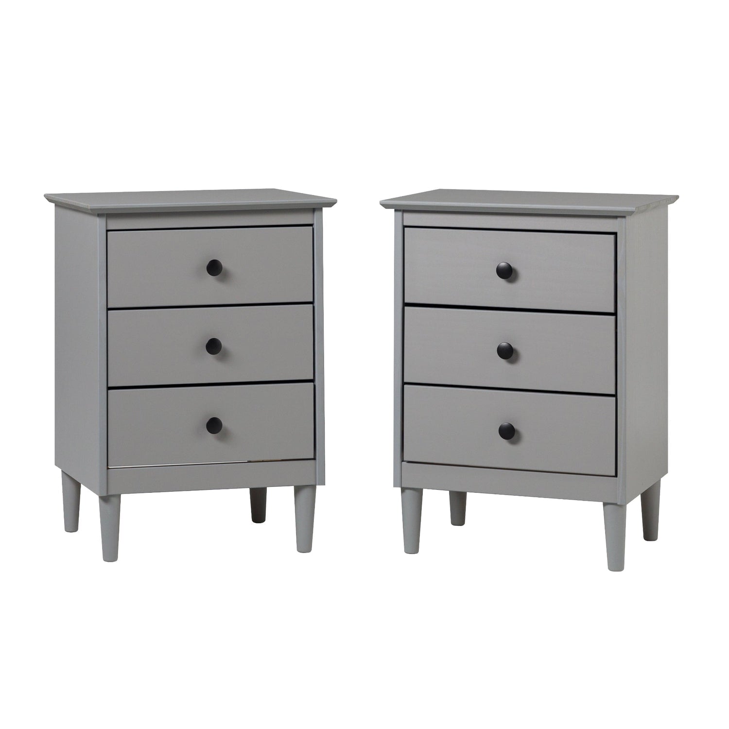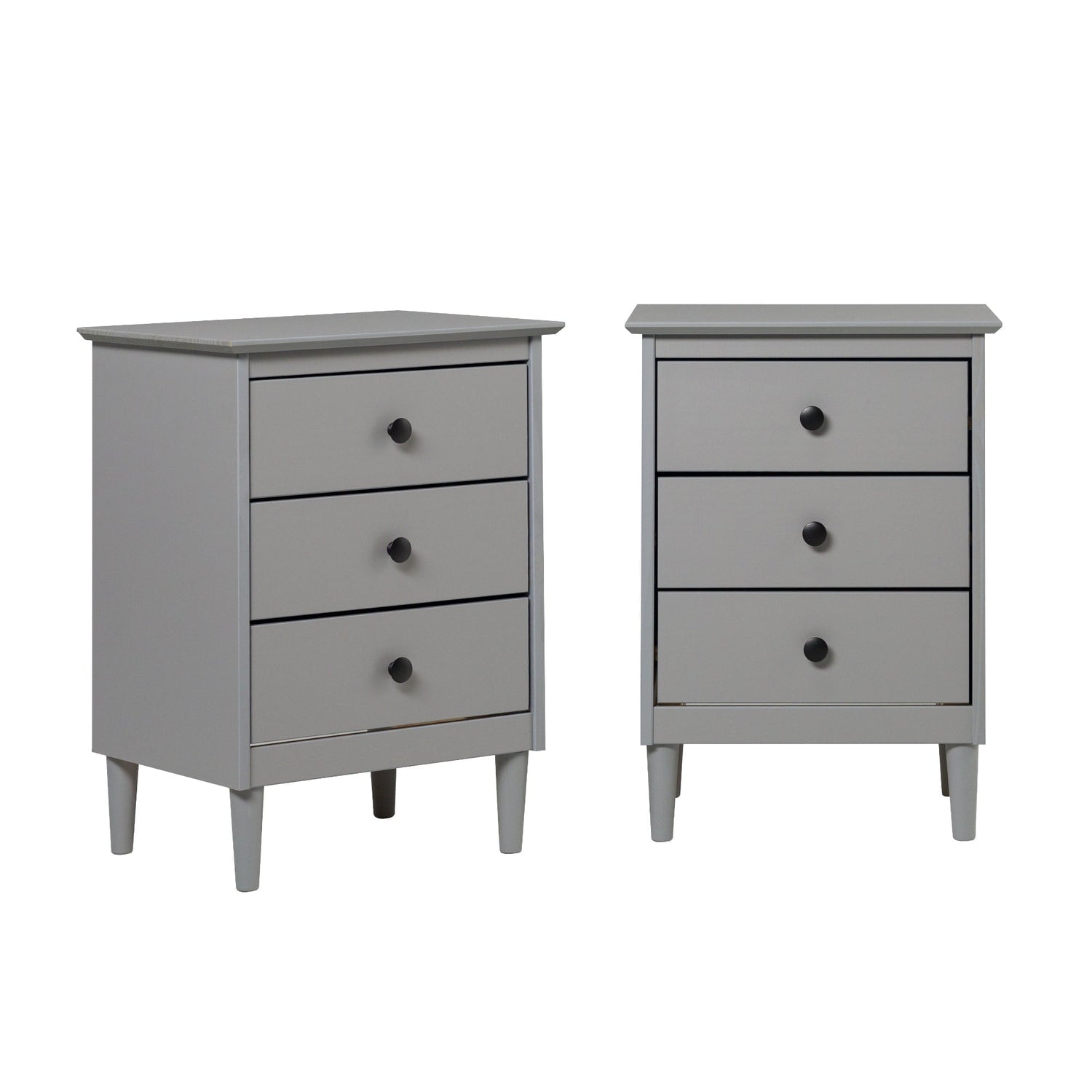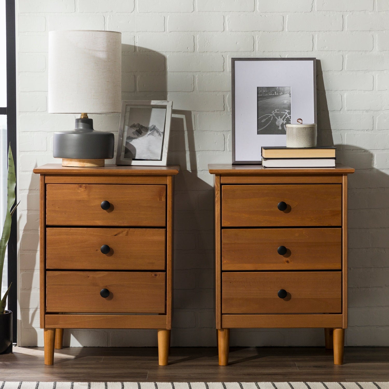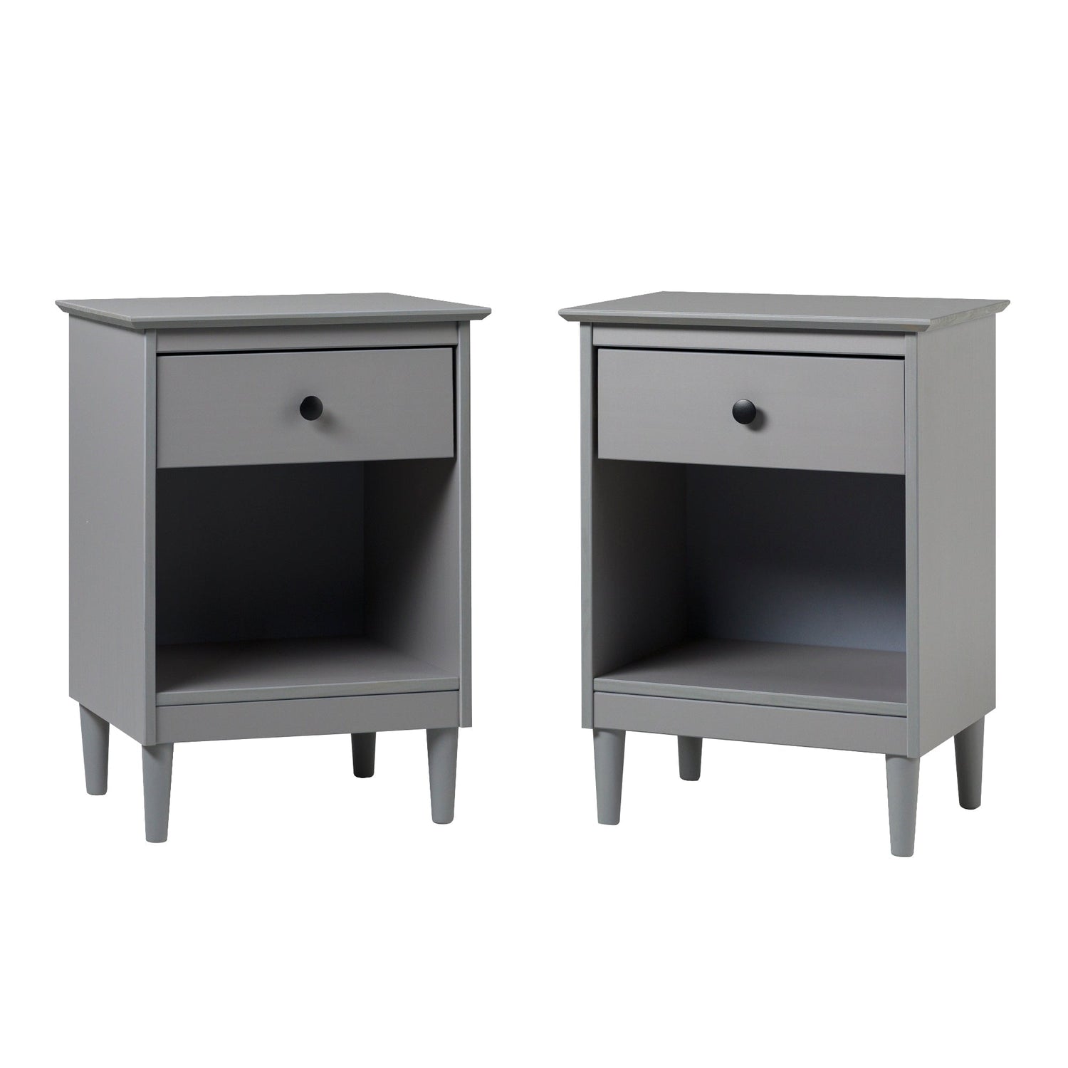 The Spencer Solid Transitional Wood Nightstand combines solid pine and manufactured wood with a smooth painted finish, creating a timeless piece that bridges traditional and modern aesthetics. Its centered knobs and short, tapered legs provide subtle detailing, while the design offers practical bedside storage for essentials like phones and lamps.