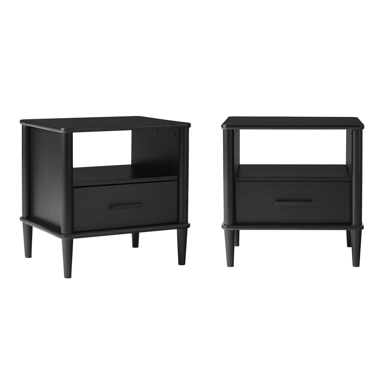 The Spindle Transitional 1-Drawer Nightstand combines solid wood craftsmanship with a clean, versatile design. Its spacious tabletop and open cubby provide ample room for display, while the smooth-glide drawer offers convenient storage for essentials, enhancing bedroom organization with subtle elegance.
