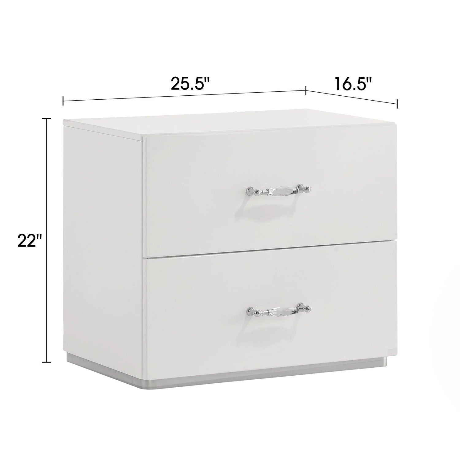 Stoholm Modern White Nightstand with 2-Drawer and Chrome Handles