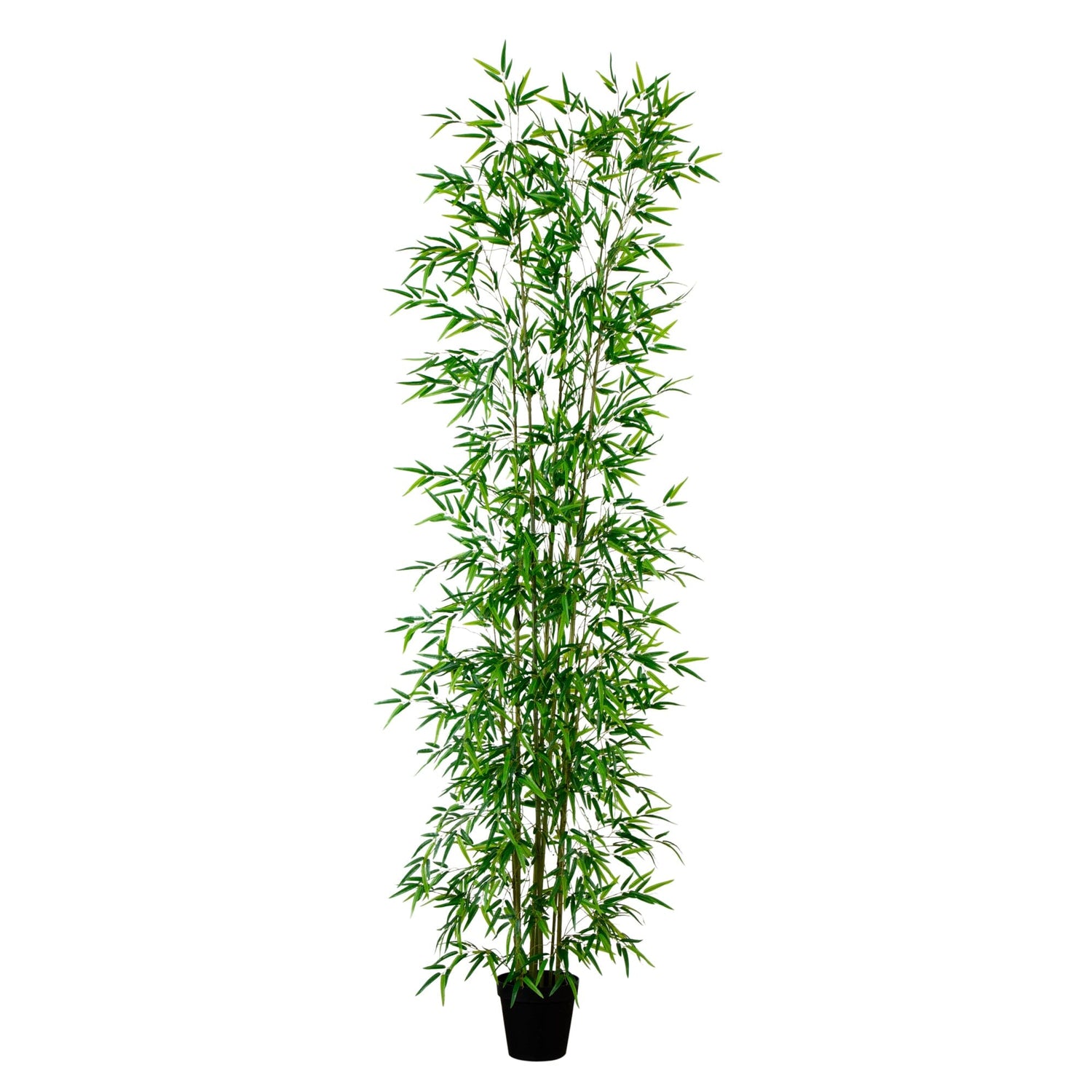 Embrace the serene beauty of Japan with our meticulously crafted bamboo tree, a proud emblem of the country's rich landscapes. Created by horticulturists with extensive travel in Japan, this piece captures the nuances and quirks of genuine bamboo - from the verdant leaves to the distinctive green branches and stems. The lush canopy is yours to shape, allowing you to bend and shape the branches for a tailored look that suits your space. With an impressive height of 11' and housed in a nursery planter, feel free to DIY and add in your favorite pot. Perfect for a living room, grand room or as a barrier for privacy, with its tall height, it's a great piece for spaces with high ceilings.