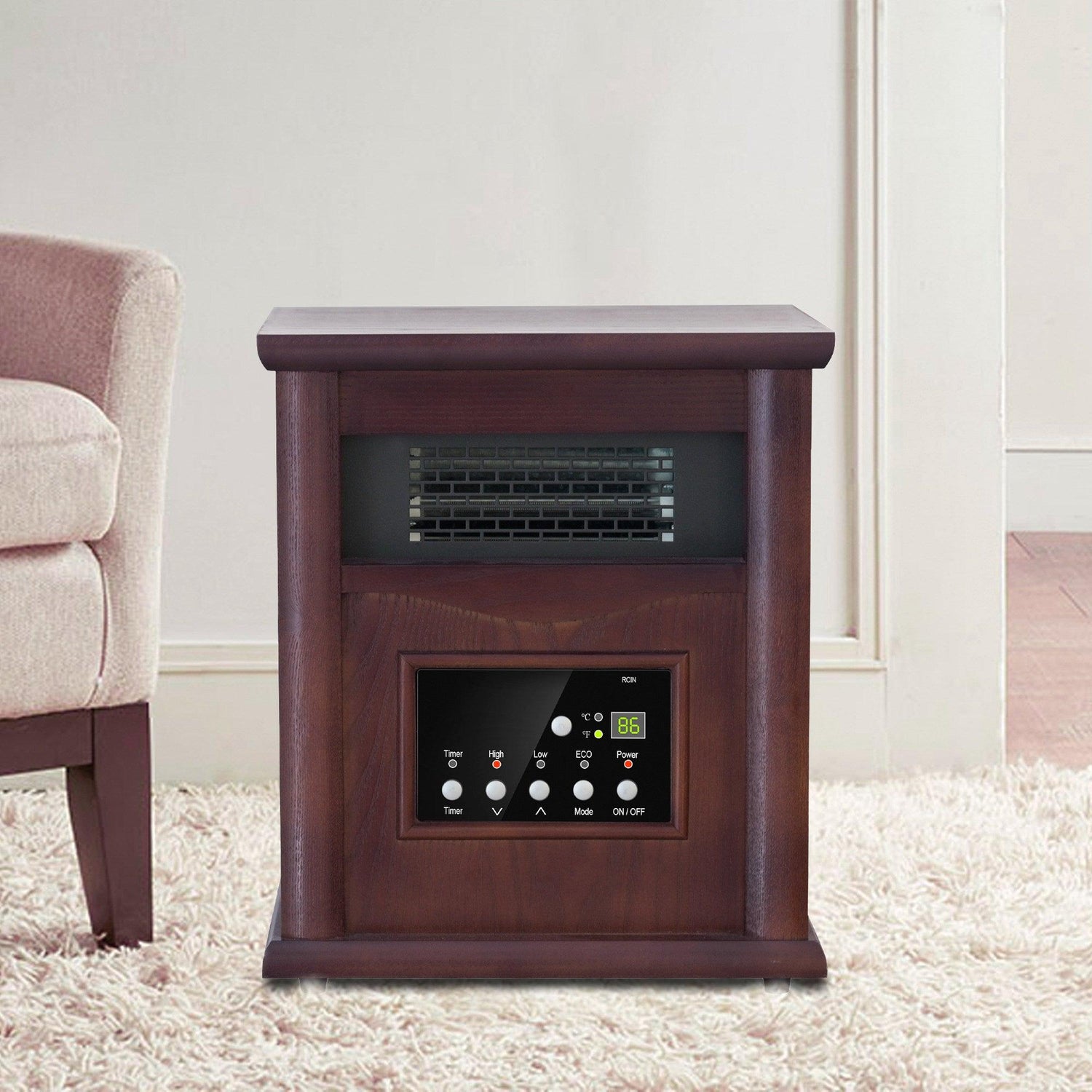 1500-Watt Electric Cabinet 4 Quartz Infrared Heater Wood with LED Digital Screen, Remote Control and Timer