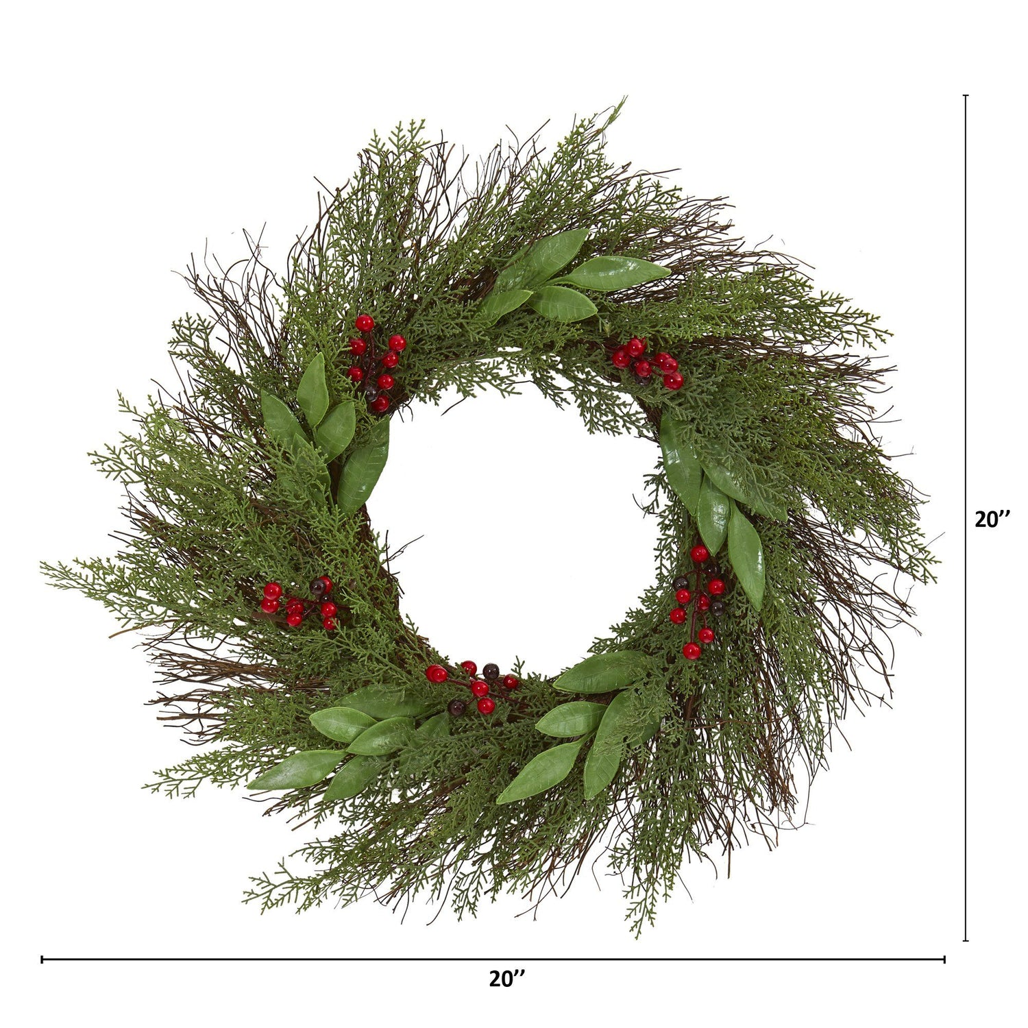 20” Cedar and Ruscus with Berries Artificial Wreath