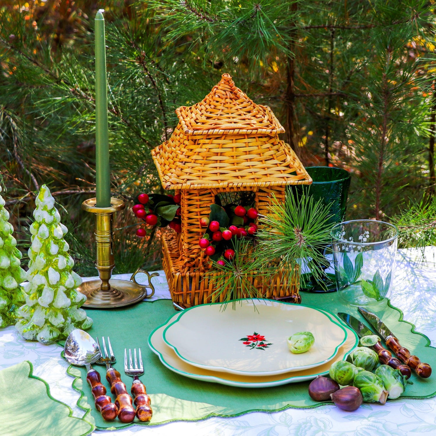 Revel in the evergreen splendor with this rich pine green taper candle, reminiscent of dense forests.