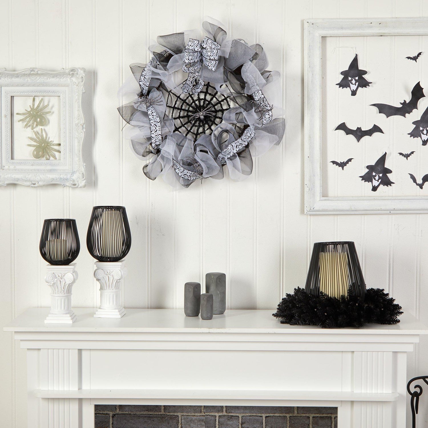 An interesting take on the spider web, you can still be spooky but refined. Decorative bows surround a spider web with a spider in the center. If you still want to have fun but keep things a bit light, you can't go wrong with this. With a diameter of 26" house in any bare wall or door that needs a festive touch. Makes a great gift too.