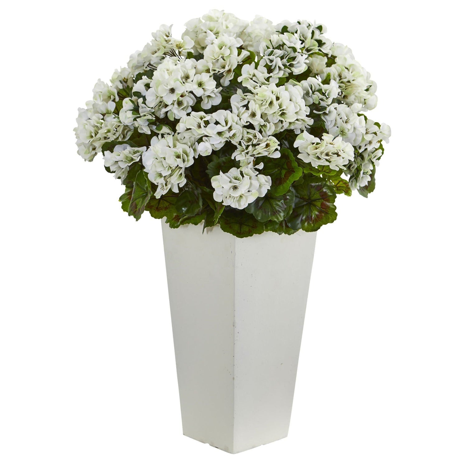 27” Geranium Artificial Plant in White Planter UV Resistant (Indoor/Outdoor)