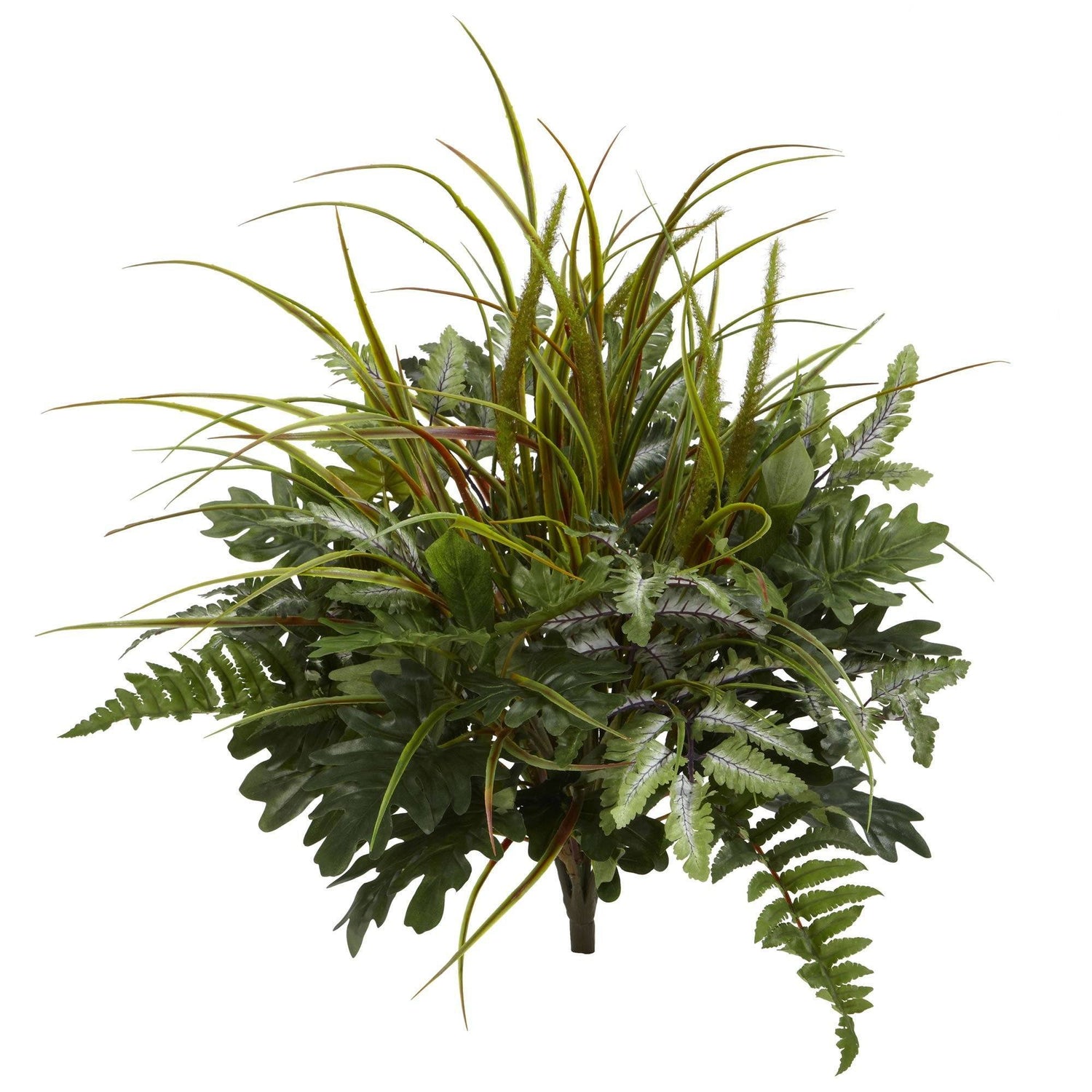 Wild and lifelike in appearance, the artificial long grass is combined with several other plants selloum philodendron, bracken, and leather fern; to give this plant's foliage a full, lush look. Add a touch of nature to your study room when you place this artificial plant on a desk, a low book shelf, or bench in a neutral toned pot.