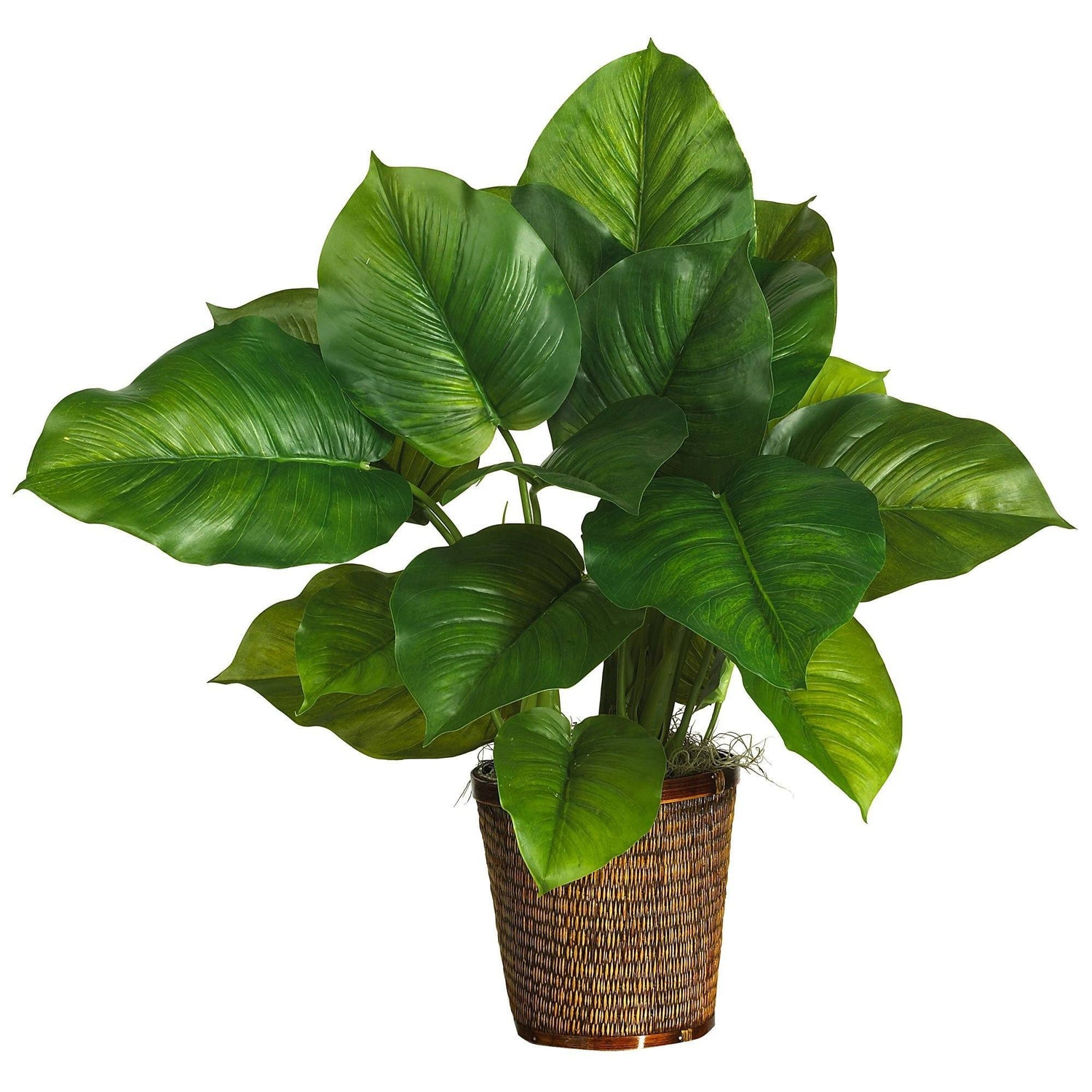 An abundance of bold lush greenery decorates this large leaf Philodendron. Not only does this plant have a highly detailed leaf pattern but it also feels real to the touch. So real in fact, your guests won’t know the difference. Slender delicate stems sprout forth from a trendy wicker basket filled with moss. At 29 inches tall, it’s the perfect size for your home or office.