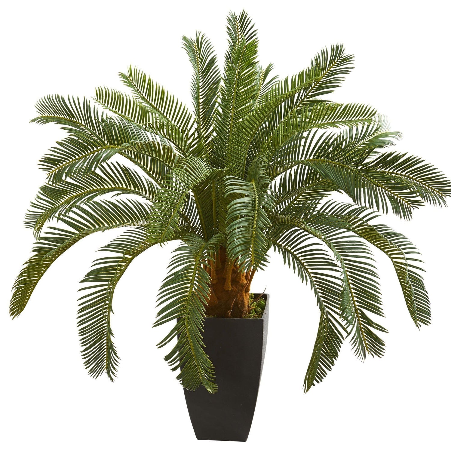 The thick, textured trunk of this cycas artificial plant sports many, lifelike green fronds that artfully splay outwards. With its brilliant greenery, it will contrast beautifully with any darker decor or furniture pieces in your home. Position this in your reading nook behind a chair or next to your low bookshelf to bring a bright color to the space.