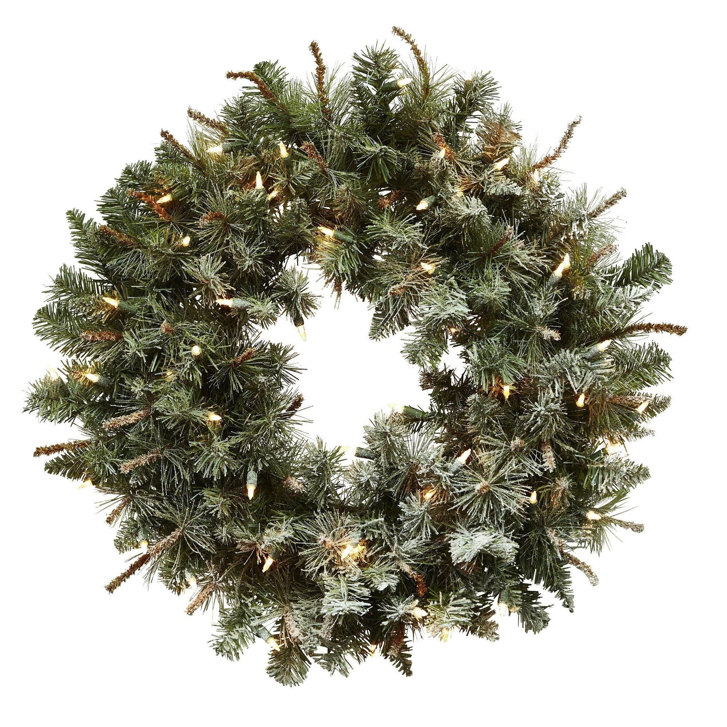 Guaranteed to make you think of cool, crisp winter evenings, this wonderful wreath is perfect for holiday decorating. With fluffy pine tips (170 of them) frosted just so, it'll look like a delightful little snowfall happened in your living room or office. The cherry on top is the 50 clear lights, which make it look nothing less than magical. Makes a fine gift as well.