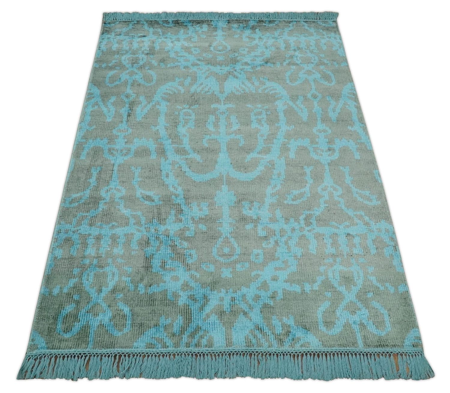 4.5x6.5 Hand Knotted Blue and Gray Modern Persian Style Contemporary Art Silk Area Rug | OP133