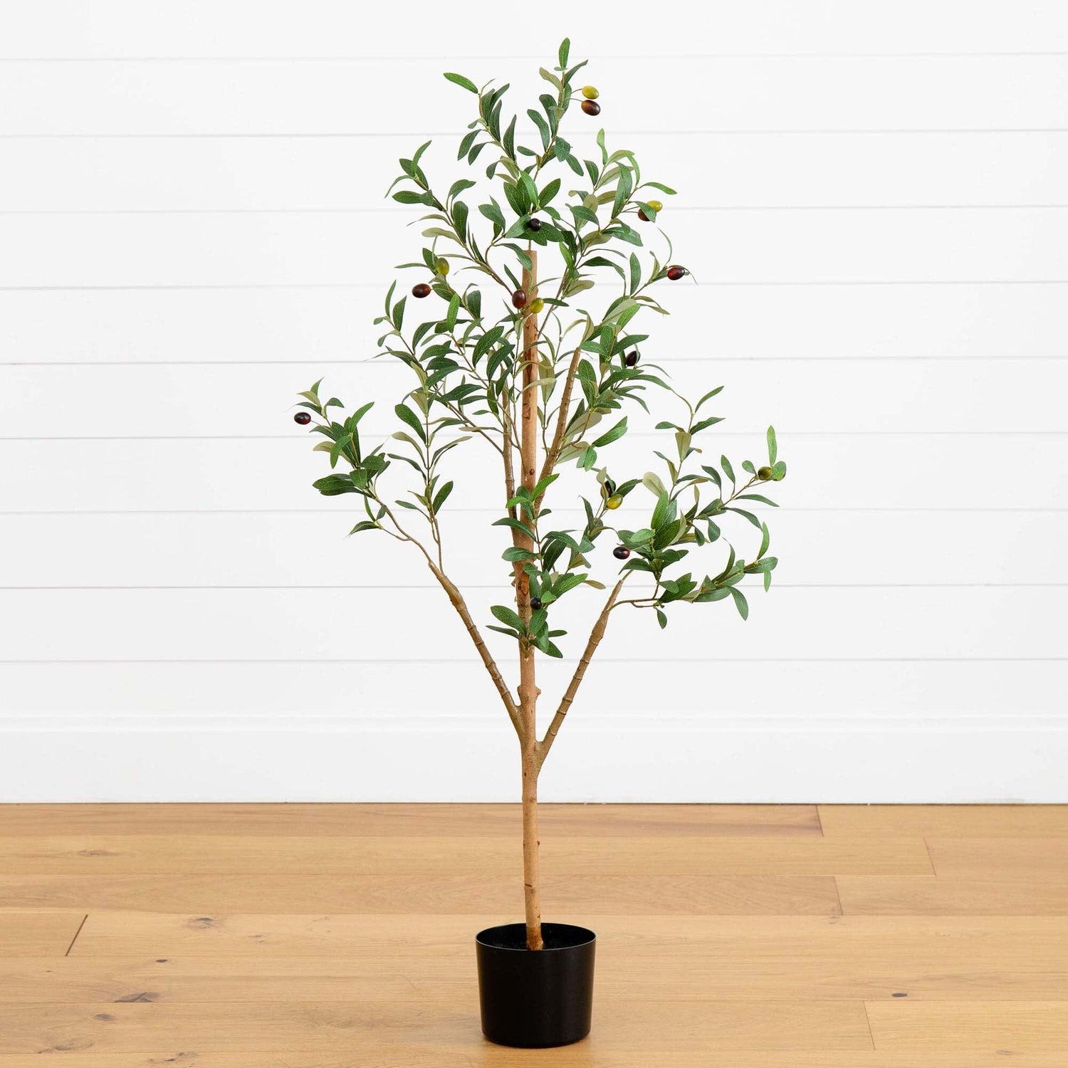 Bring a touch of Mediterranean elegance to your space with the faux olive tree, a piece that effortlessly combines timeless beauty and modern charm. This tree showcases a natural trunk and is adorned with leaves in a blend of light and dark green shades. Crafted from high-quality materials by seasoned horticulturists, the branches are designed to be bendable, allowing you to create a unique, personalized appearance. Accented with faux olives in various hues, it's a versatile addition to any decor style. At a quaint height of 4', this mini yet majestic olive tree is a trendy and popular choice for bringing a slice of the Mediterranean into your home. Explore this tree in sizes ranging from mini to tall, perfect for any space in your home.