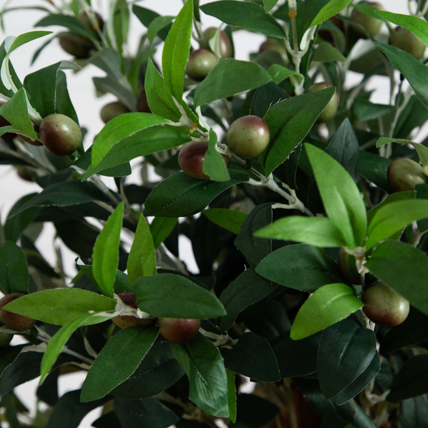 Here's one of the prettiest silk trees you can buy. This 48" Olive Topiary is a perfect recreation of an Olive tree, exquisitely shaped, and in full bloom. With more than 1,000 leaves and nearly 100 berries, you'll almost feel the need to post a sign saying "don't pick them". Yes, it looks that real, and will make an ideal addition to your home or office décor. Makes a perfect gift as well.