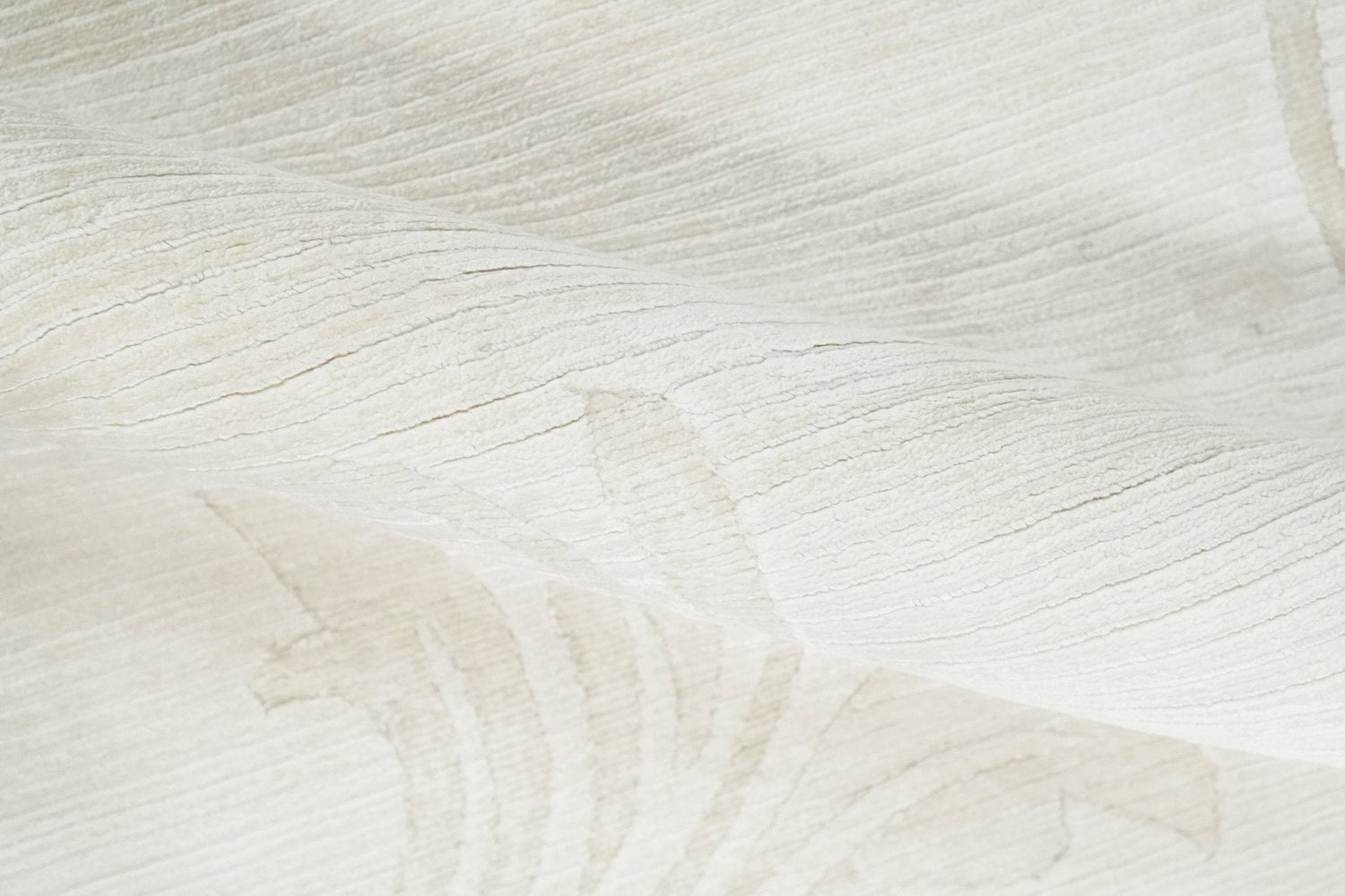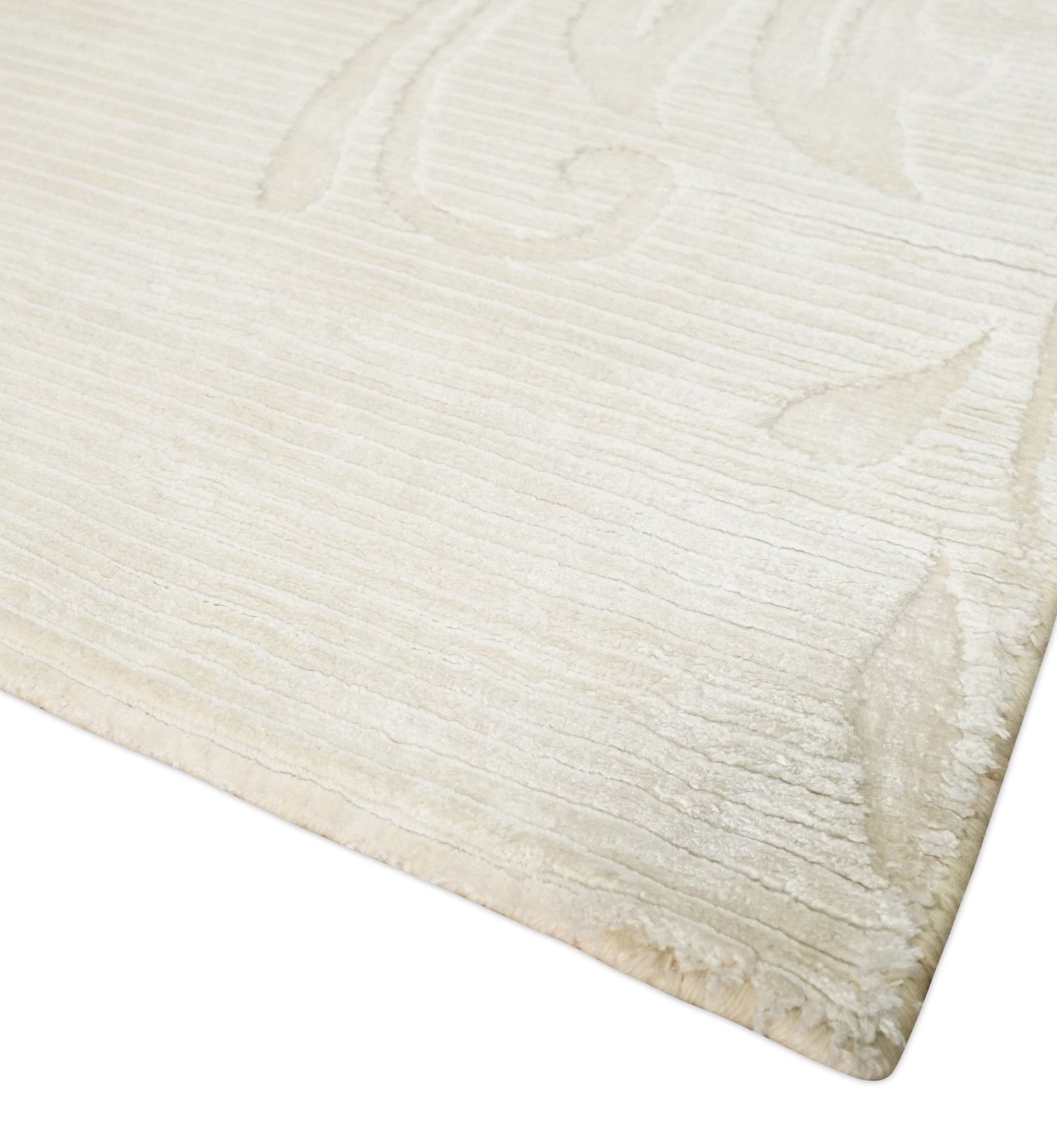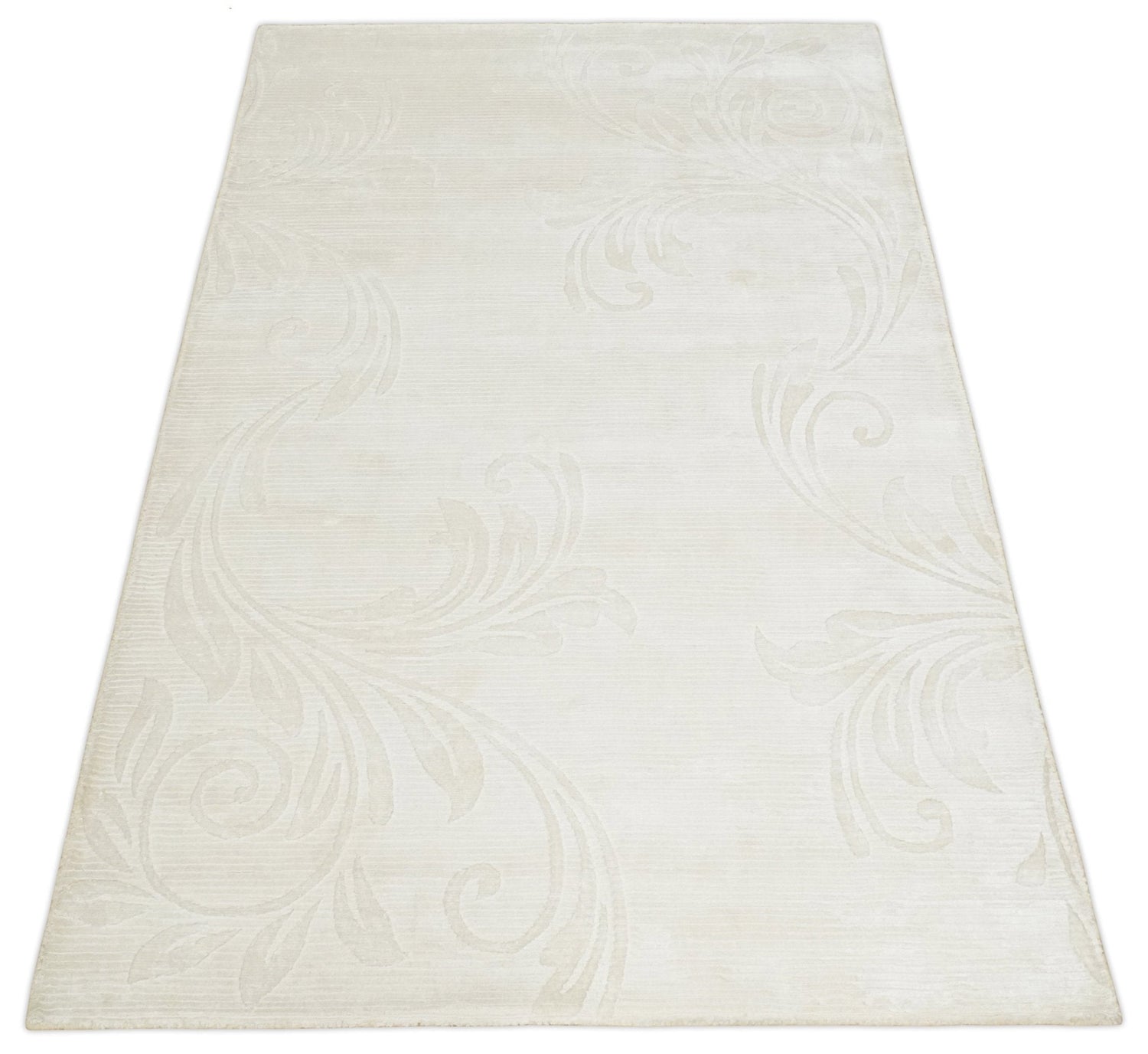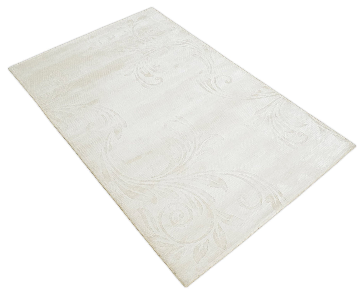 4x6 Hand Woven and Carved Silver and Ivory Floral Art Silk Rug | KNT5