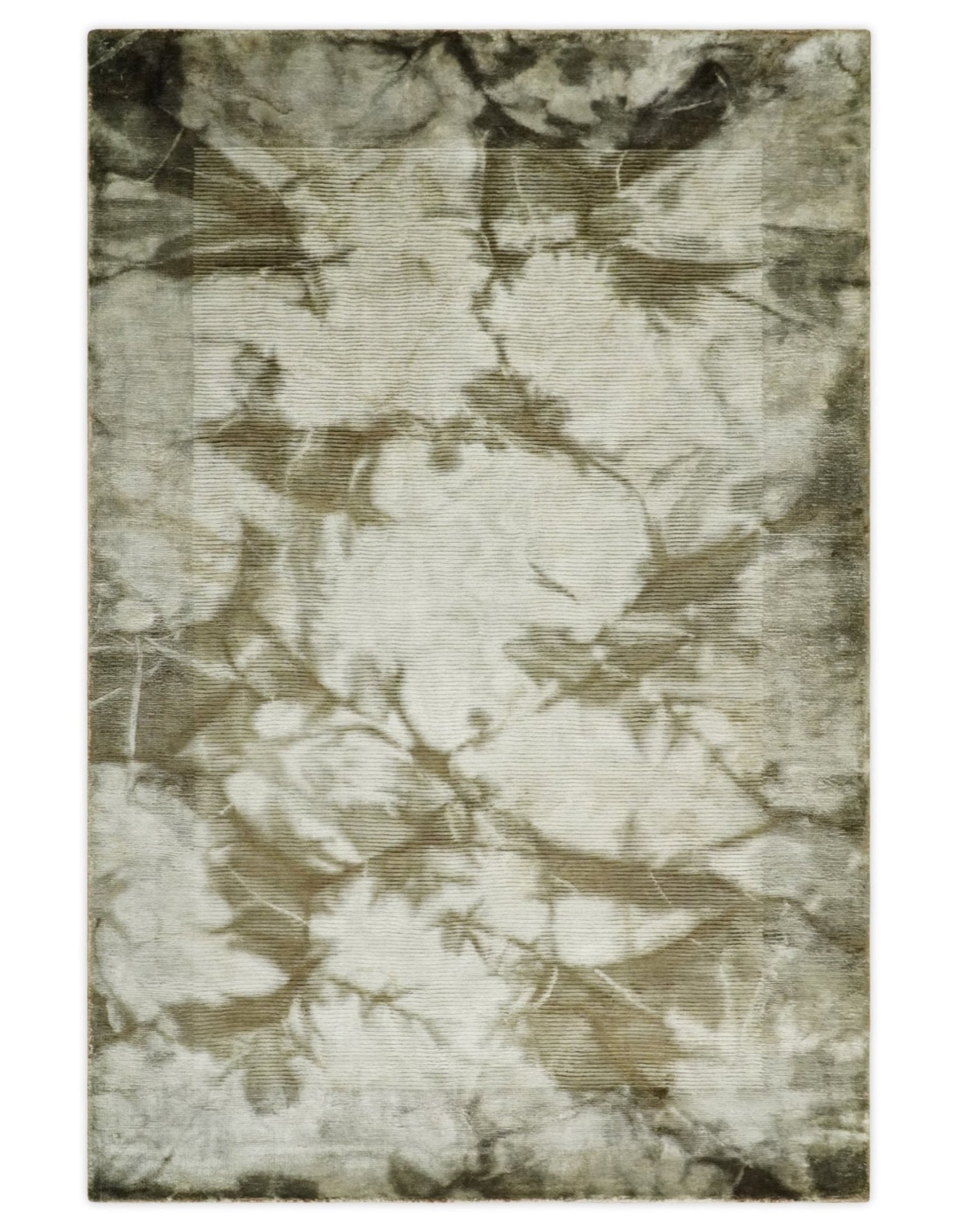 4x6 Modern Abstract Hand Woven Silver and Olive Art Silk Rug | KNT15