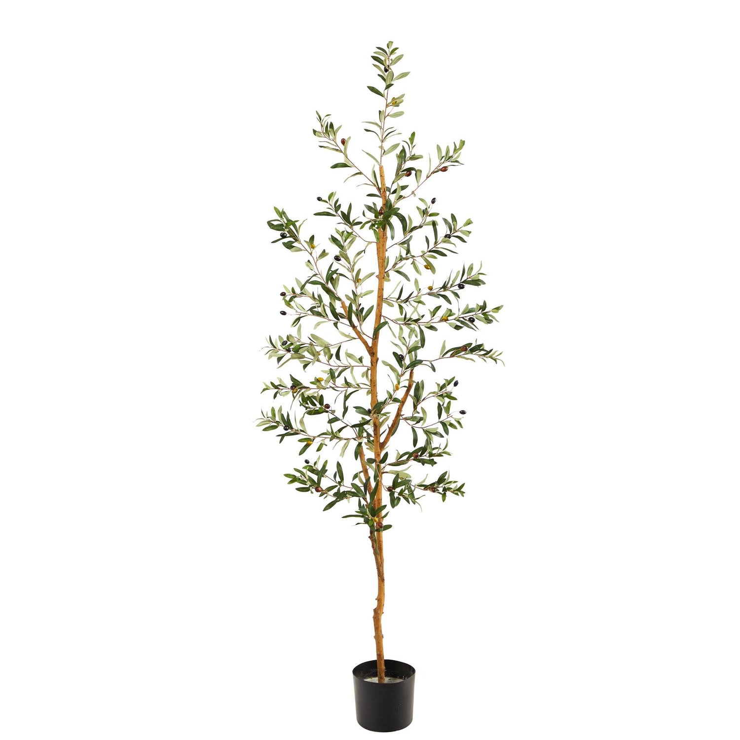 You don’t have to go far to attain a vacation state-of-mind with this Olive Artificial Tree. Embrace the Mediterranean lifestyle with this skinny, elegant tree showcasing a sparse design with variegated 690 olive leaves adorned by small olives – a delicacy in the region. Standing at 5.5’ tall from its black pot, you can customize this faux Olive Tree with the planter you like and make this piece truly unique. Incredibly lifelike, easy-to-bend branches allow you to shape as you desire fit to your space. Decorate in your office, living room, or kitchen nook for an elegant, fresh touch.