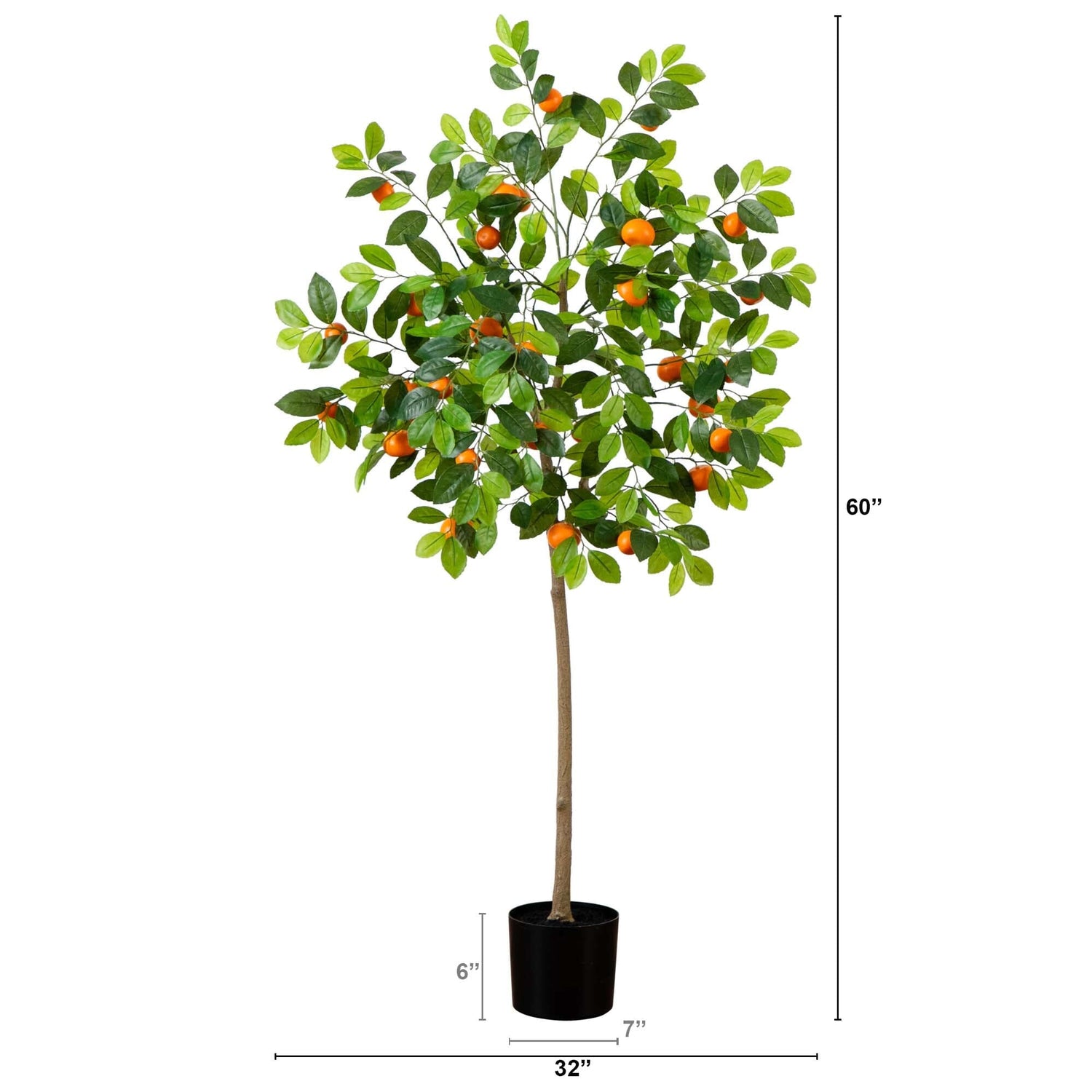 Sometimes all you need is a touch of citrus to brighten your day, and this faux tangerine tree does just that. Inspired by the sunny Floridian coastline, our horticulturists have captured every intricate detail, from the varying shades of green in the leaves to the vibrant hue of the tangerines. You can shape the branches to create a unique, one-of-a-kind look that complements any space year-round, not just in spring. Standing 5' in a nursery planter, place it in any area that needs a little zesty touch, decorate by adding your own planter. Perfect for a nursery, home office, kitchen nook and more.