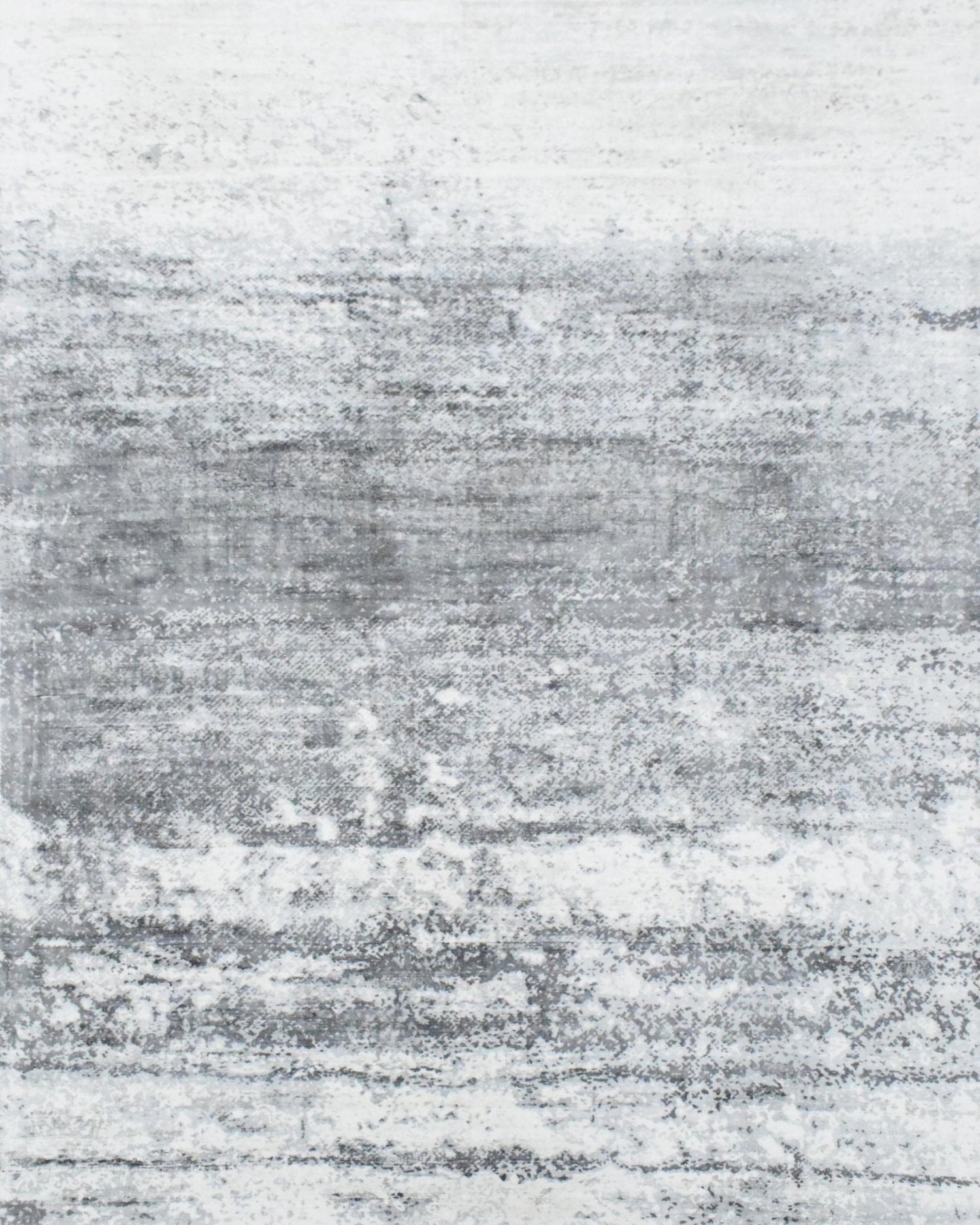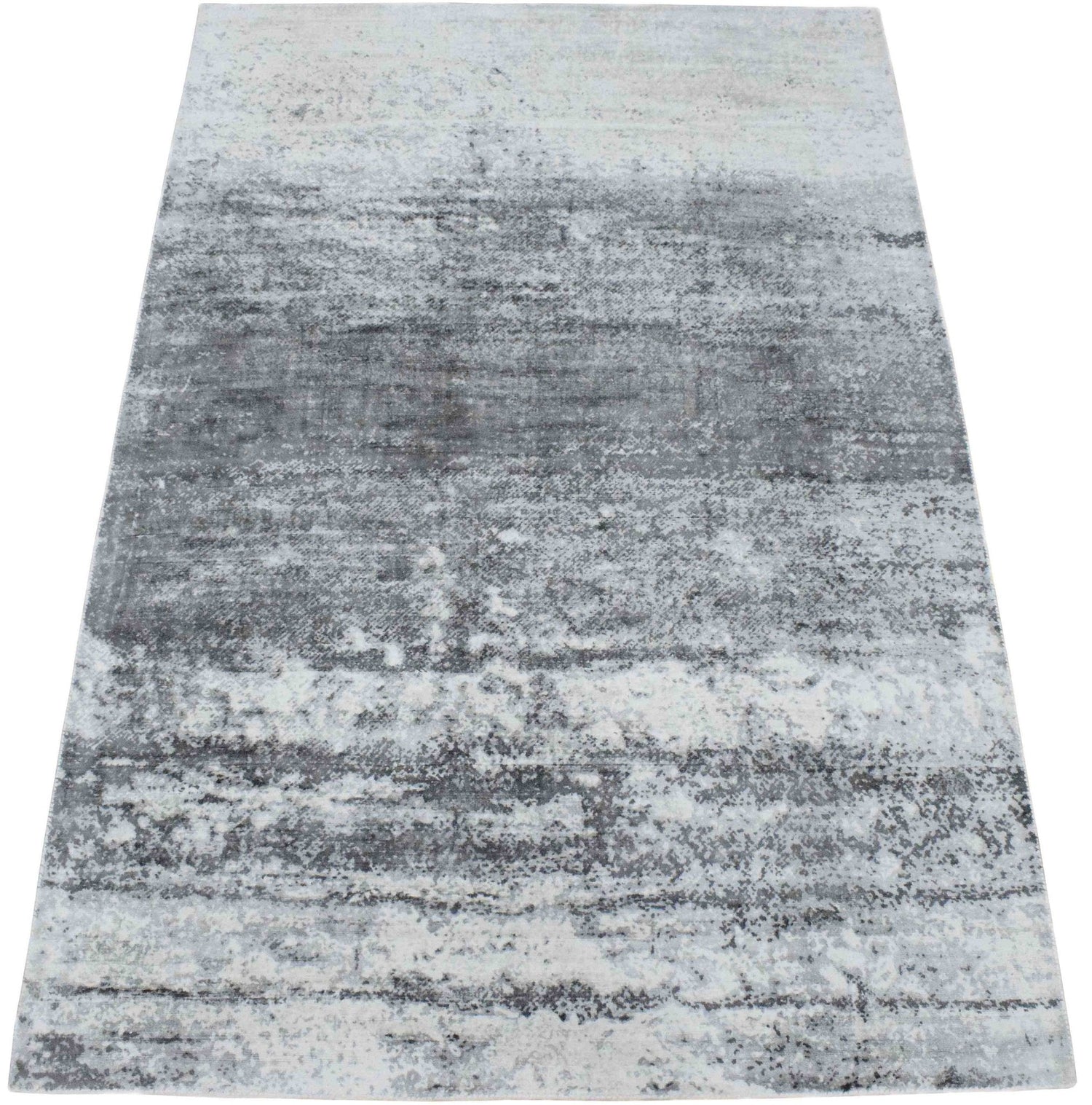 5x7.6 Rug, Abstract Ivory and Gray Rug made with Viscose Art Silk