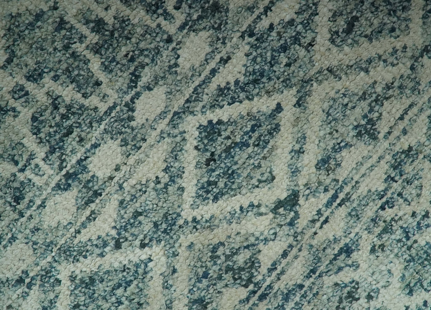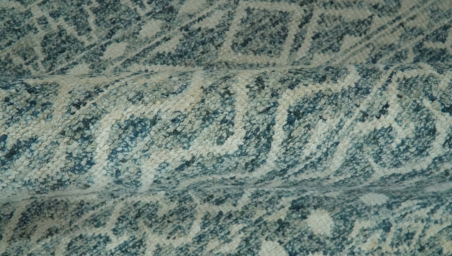 5x7 Teal and Beige Hand knotted southwestern Tribal trellis recycled Art Silk rug