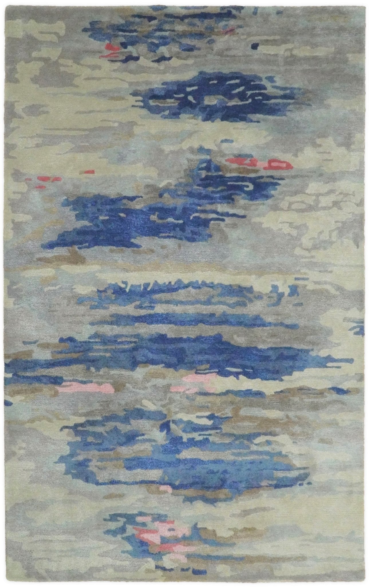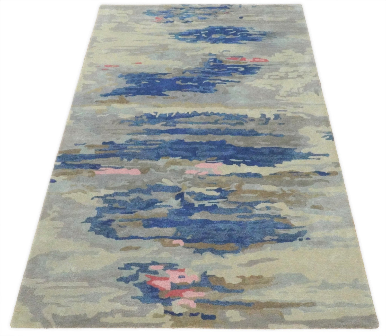 5x8 Blue and Silver Abstract Handmade Wool and Art Silk Area Rug