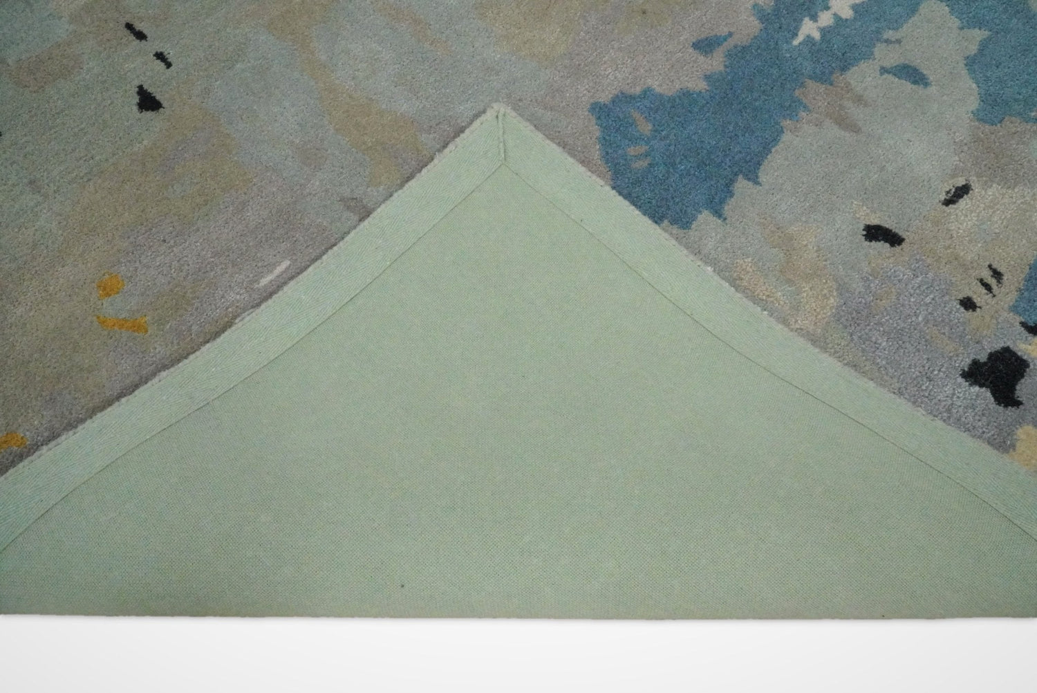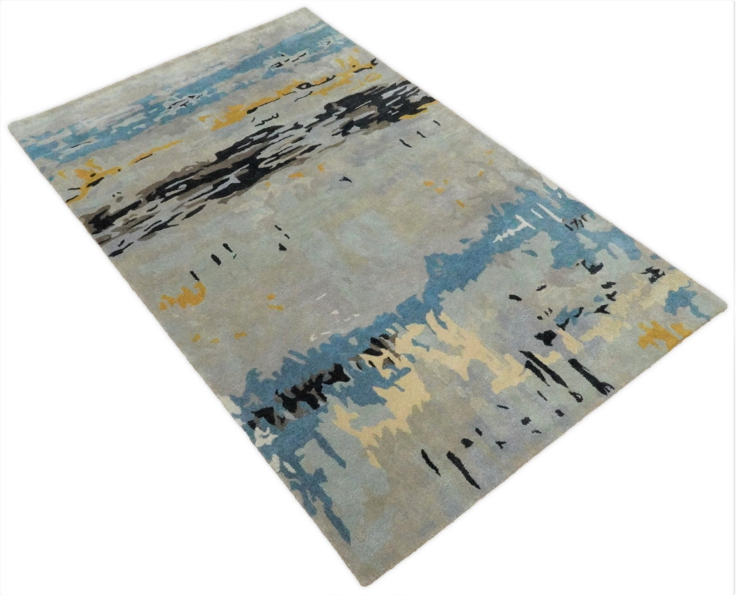 5x8 Blue and Silver Abstract Handmade Wool and Art Silk Area Rug