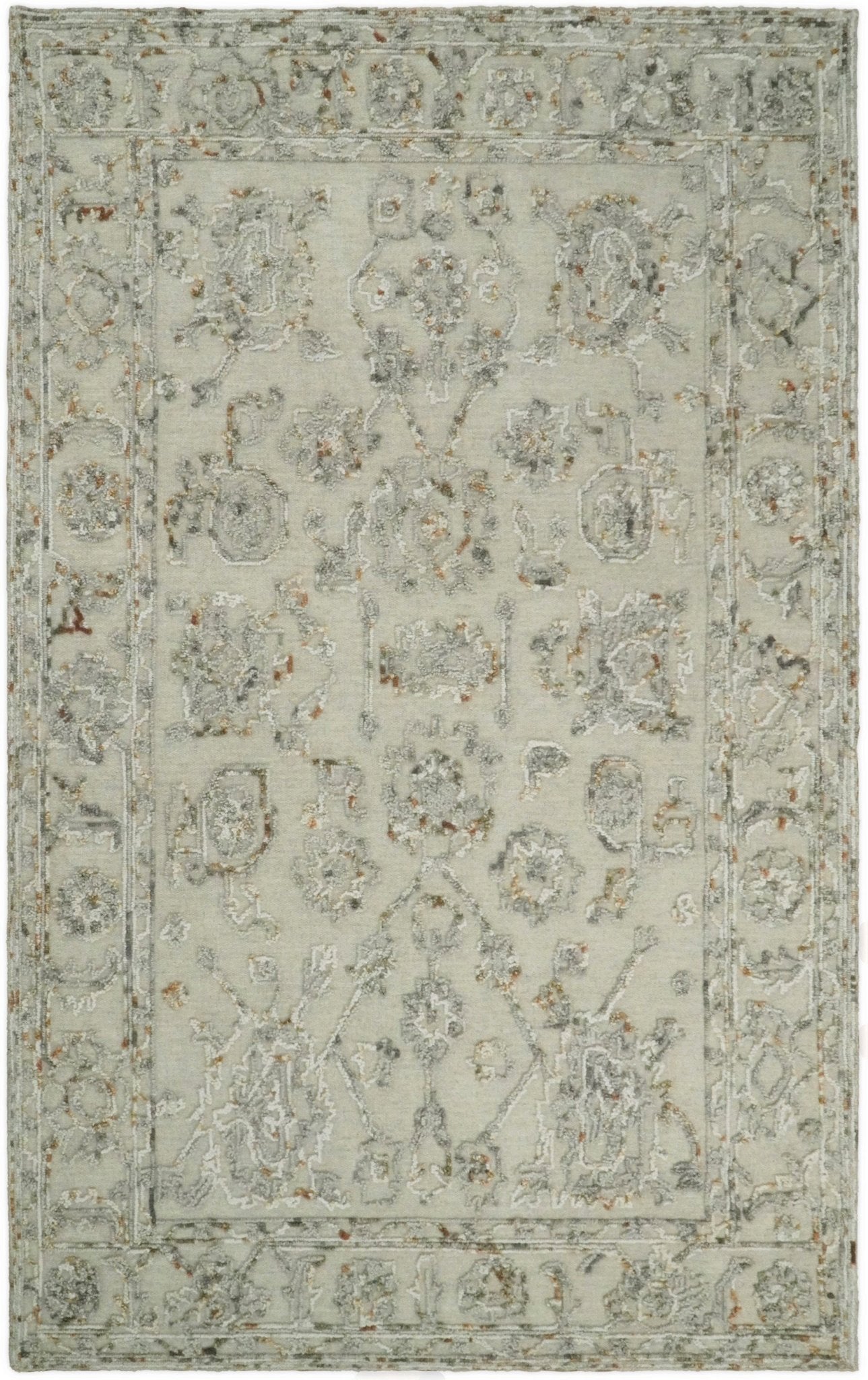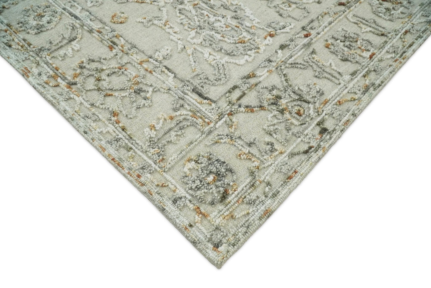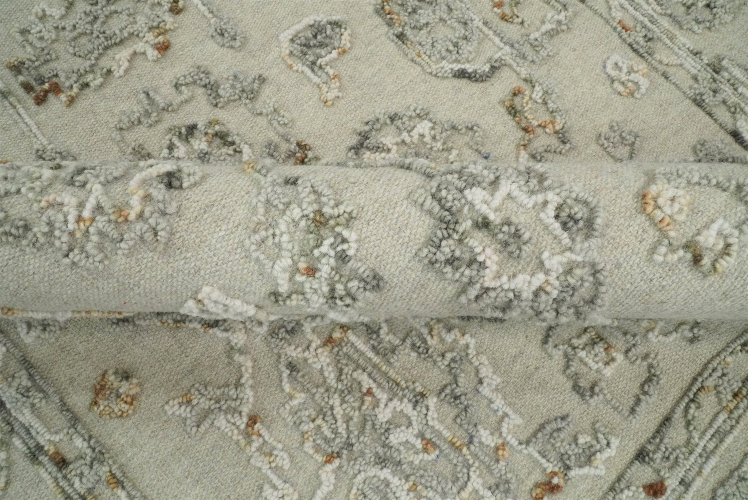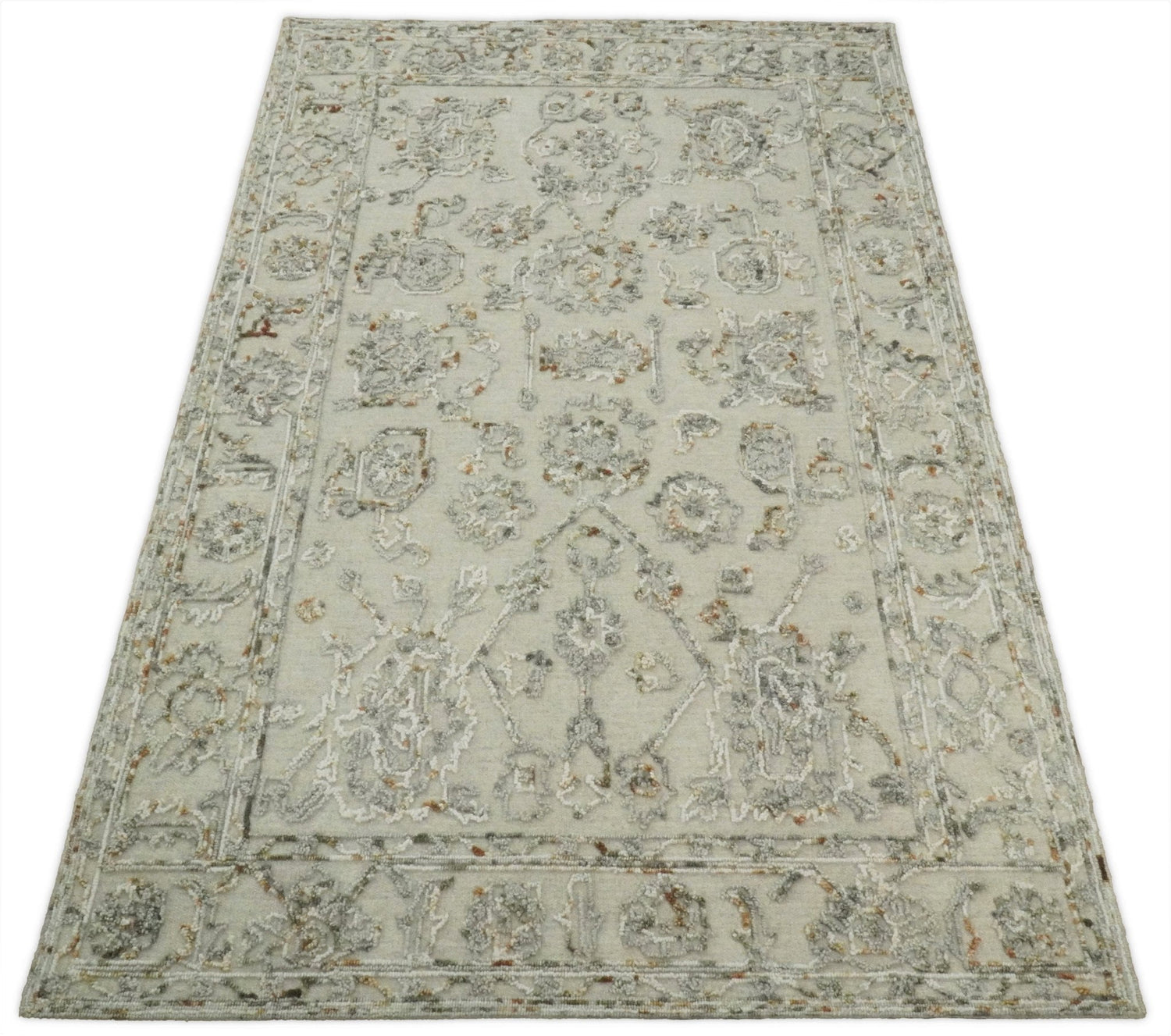5x8 Hand Hooked Beige and Silver Wool Textured Loop Area Rug | GAR2