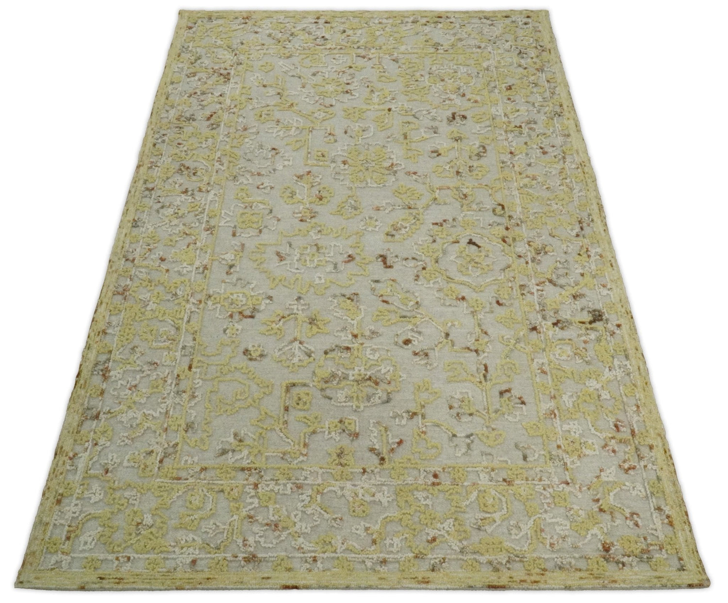 5x8 Hand Hooked Yellow and Ivory Wool Textured Loop Area Rug | GAR6