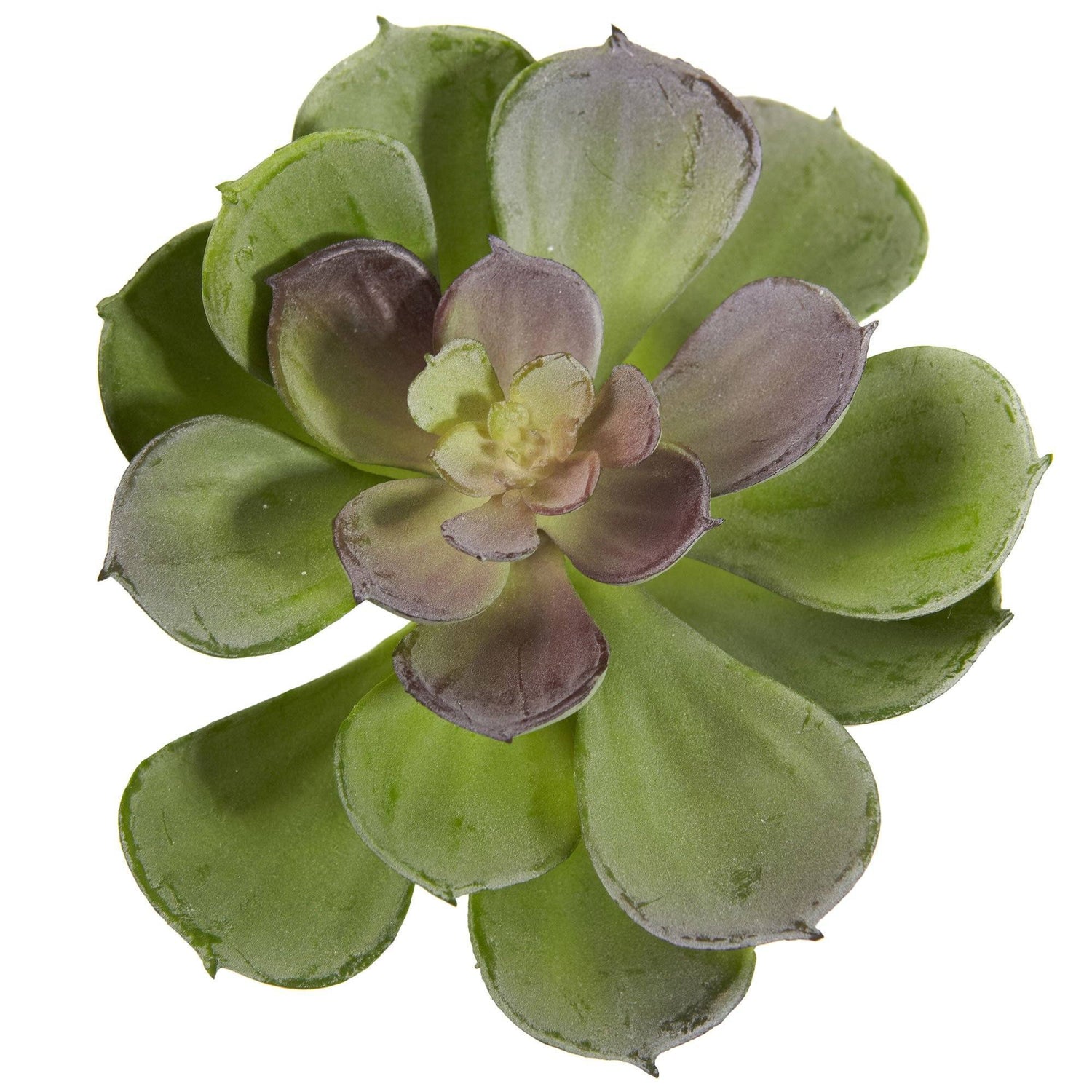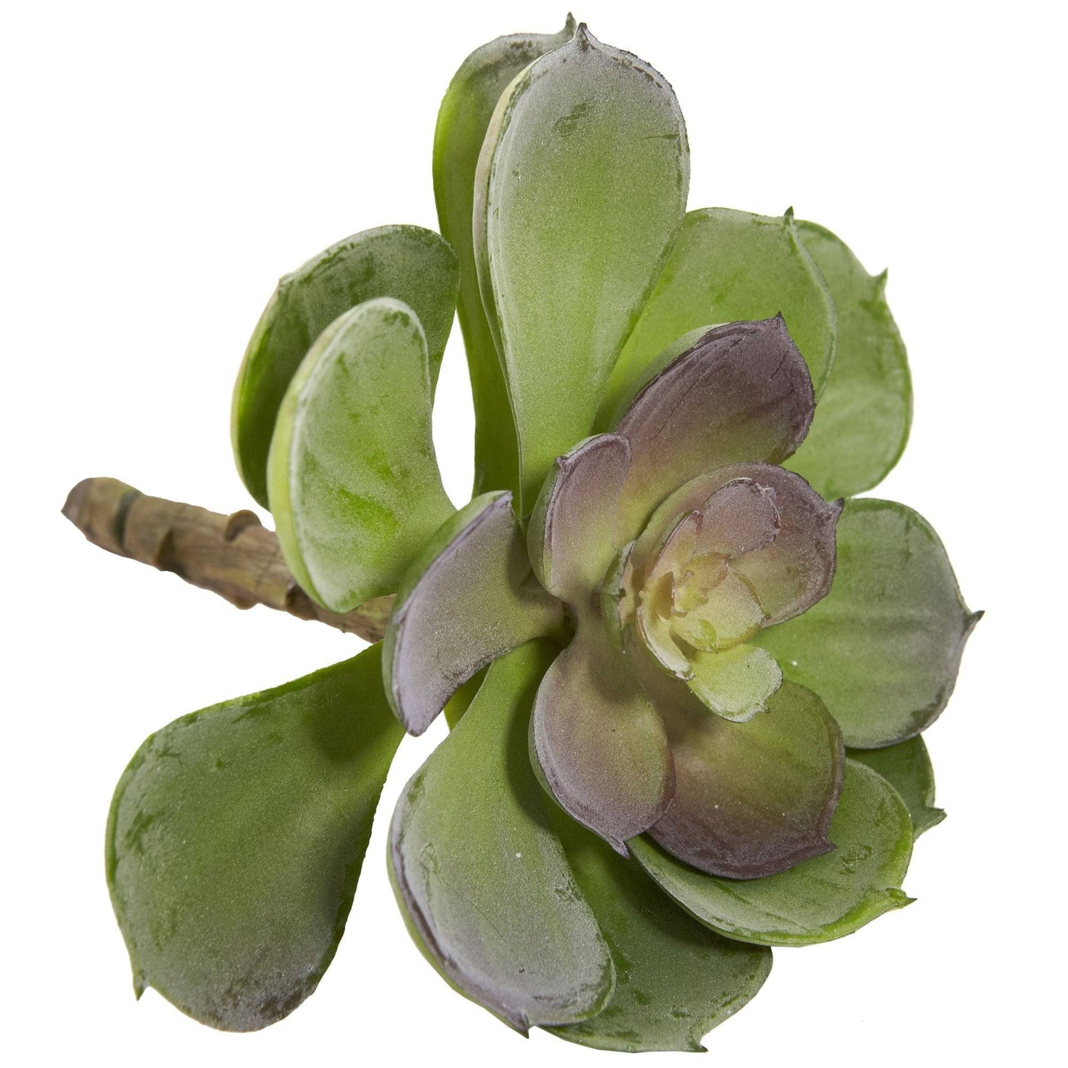 A unique style among Succulents, this Echeveria Succulent stands six inches tall and comes in a set of a dozen for maximum decorative potential. The leaves on this selection are layered, giving the fronds multiple levels, and really add to the look of this piece. Plus, they never need water, so place them anywhere you wish. Makes an interesting gift as well.