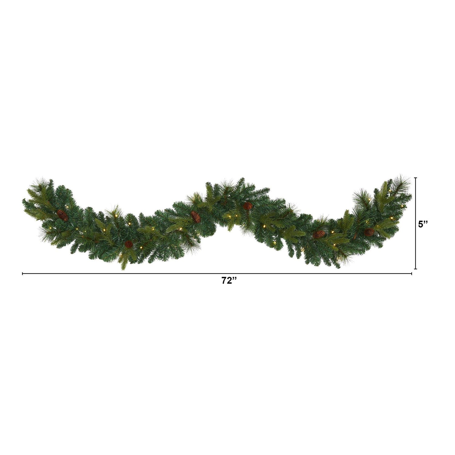 6’ Mixed Pine and Pinecone Artificial Garland with 35 Clear LED Lights
