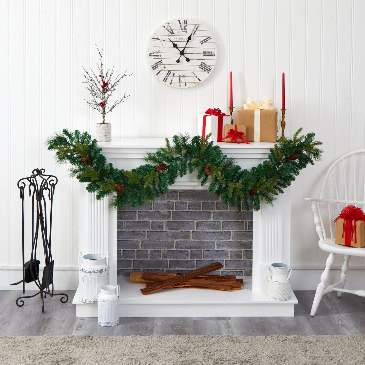 Complete your holiday decor scheme with this artificial winter garland, intricately designed from a mix of realistic looking pine foliage in a palette of seasonal evergreens, accented throughout with faux pinecones that look incredibly lifelike. Great for showcasing over a mantle, bare counter, or stair banister, this handsome 6’ long artificial garland will undoubtedly complete a traditional holiday setting for years to come.