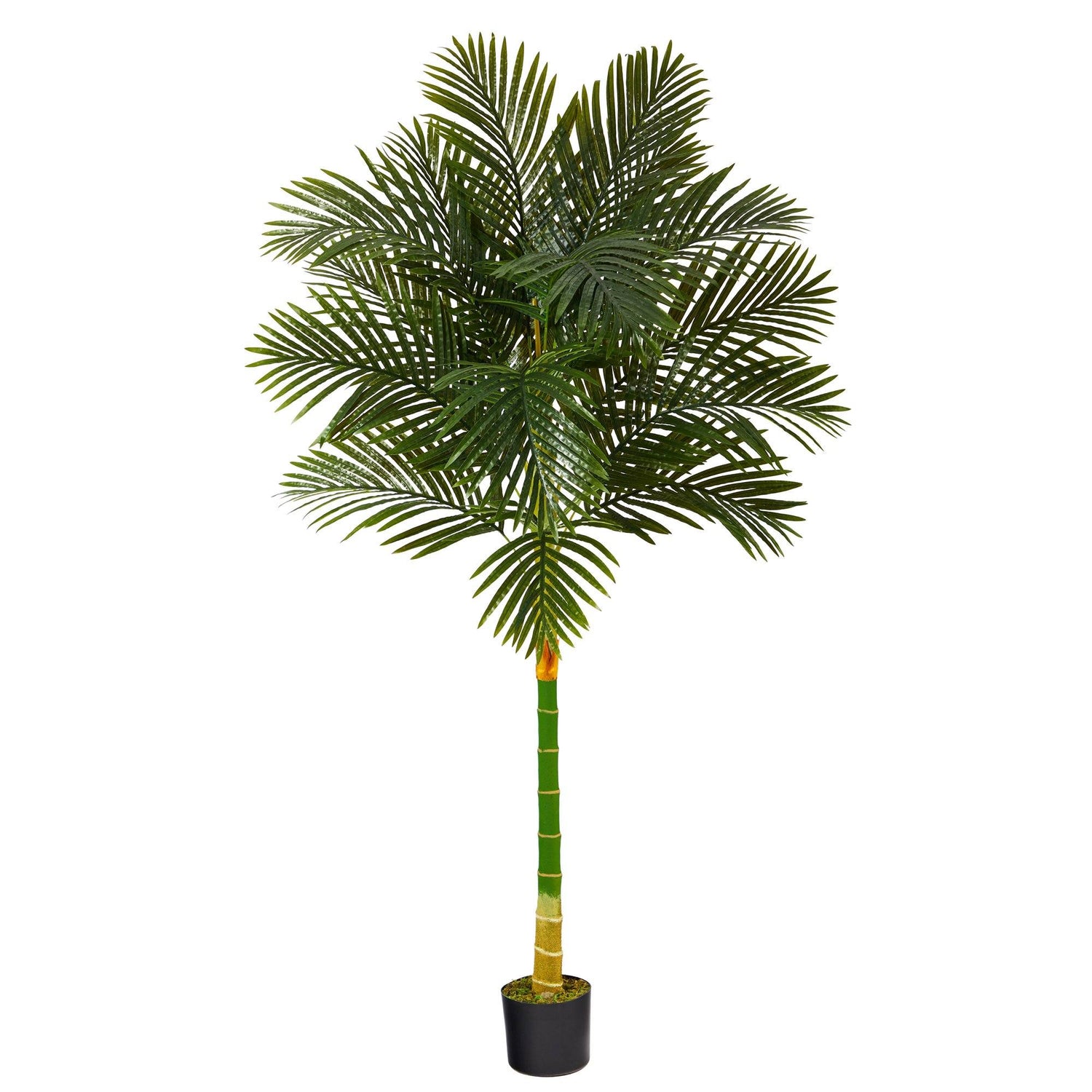 Picture your perfect summer vacation: Where you sun-soak on a hammock, feel the sea breeze hitting your face while sipping on a coconut. Luckily you can now tropic like its hot with this Golden Cane Artificial Palm Tree. It features lush, green leaves and gorgeous golden palm fronds stemming from a bamboo-like trunk with yellow hues. Standing a tall 6’ from a black planter, recreate island life in your sunroom, office (we promise smiling co-workers), or guest room. Do you want to feel the sea breeze with this tree?