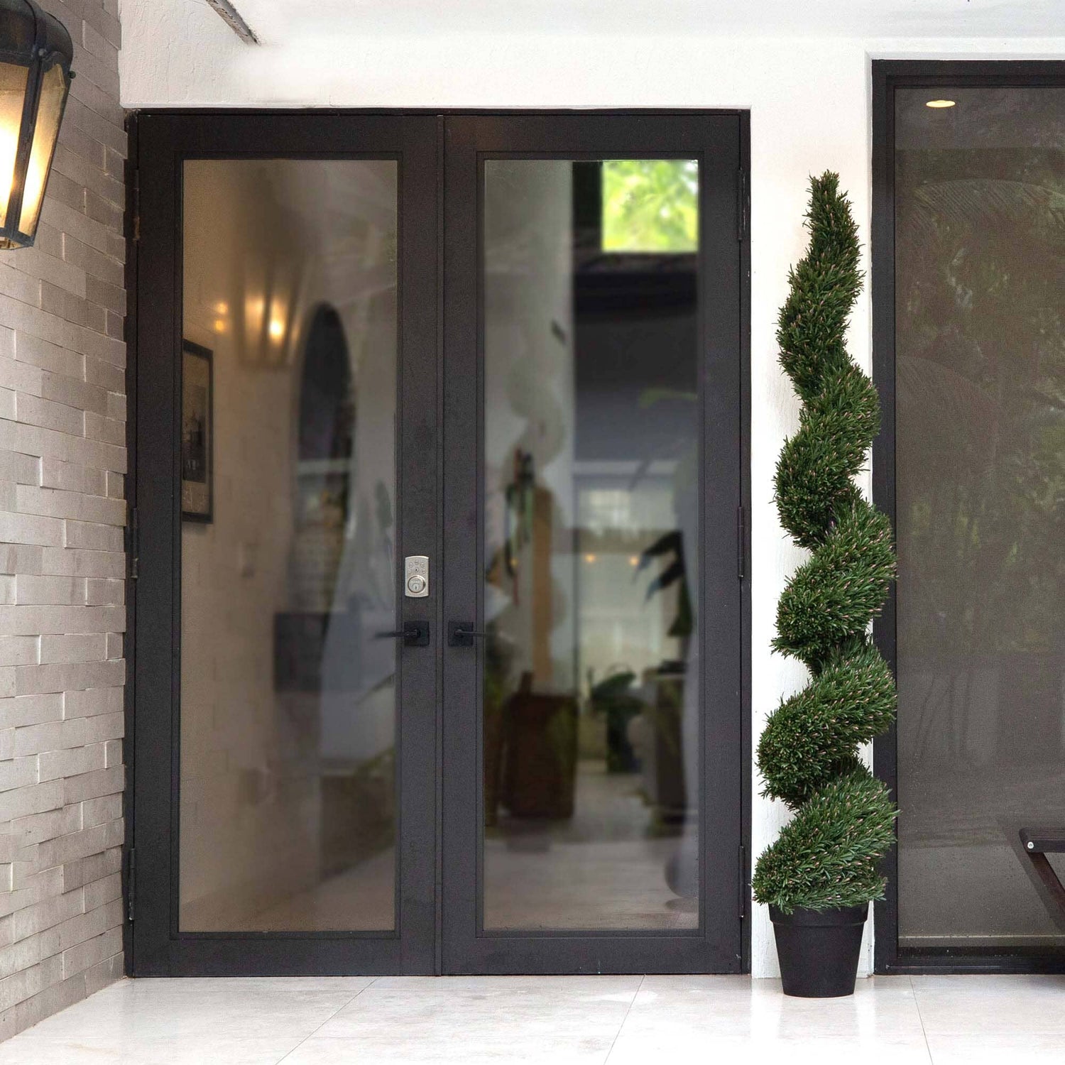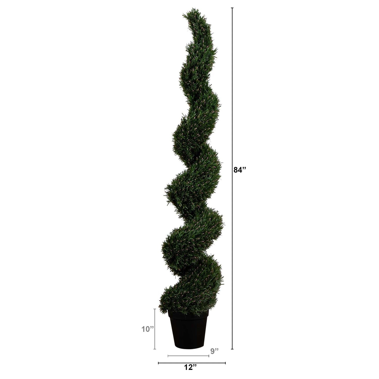 Decorate your space with the timeless elegance of our Artificial Rosemary Spiral Tree, a testament to nature's best. This UV-resistant silhouette stands tall, offering the lush allure of rosemary without any of the upkeep associated with gardening. Inspired by nature, its gracefully spiraled shape serves as a captivating visual statement in both indoor and outdoor settings, you'll notice the attention to detail throughout. At an impressive height of 7' and nestled in a classic nursery planter, this tree promises to remain verdant and vibrant throughout the seasons, effortlessly transitioning from the cozy ambiance of winter to sunny, bright summer. Place it on your porch for an instant touch of sophistication that says "welcome" all year round.