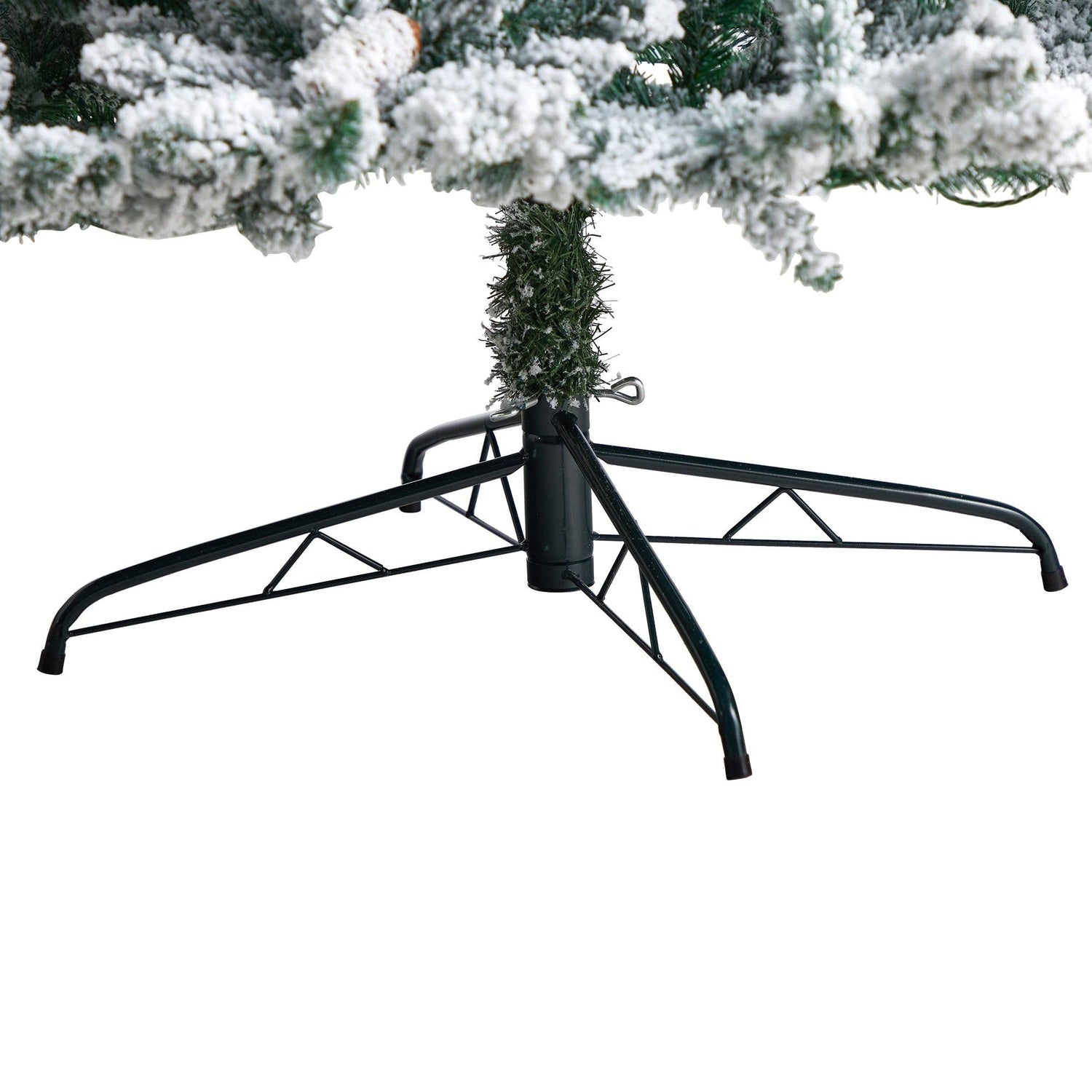 Transform your home into an enchanting winter wonderland with this flocked Livingston Fir Artificial Christmas Tree. If you dream of a white Christmas, these artificial trees are designed to mimic the texture and foliage of real trees with their upward sloping branches that can easily house ornaments. Adorned with pine cones throughout and pre-strung with 500 clear warm LED lights for a warm, candle-like glow, all that’s missing are your ornaments. Standing at 8’ from a metal stand, this flocked tree complements compact spaces that need some Christmas love.