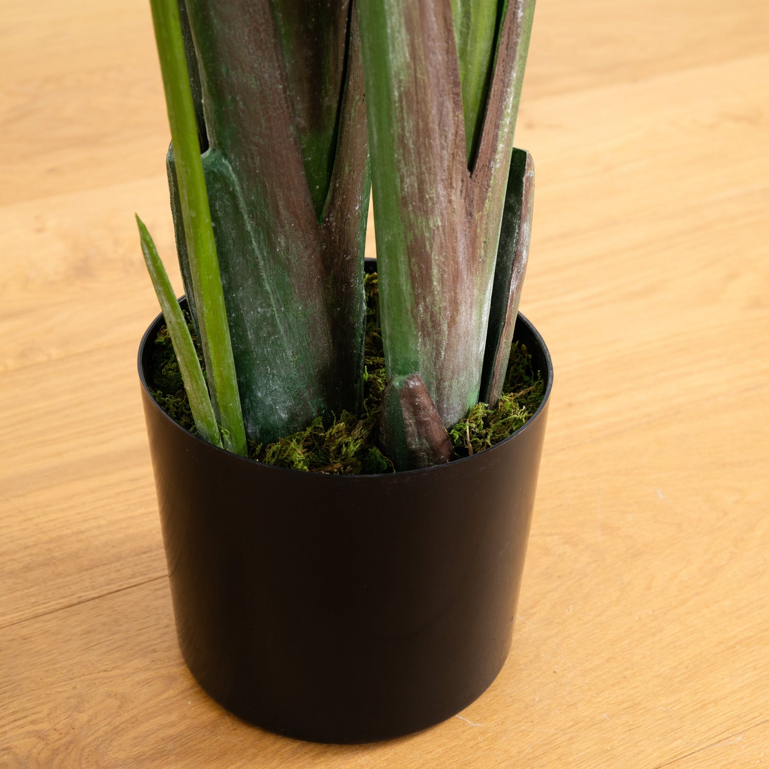 Incorporate year-round freshness throughout everyday interiors without the need for maintenance with the help of this artificial tree boasting a stunning array of realistic looking travelers palm foliage in bright vivid hues that naturally fan upwards with a lifelike quality. Standing tall and proud at 8’ high from an accompanying nursery planter, this tropical-inspired fake tree can handsomely breathe life into tight spaces throughout your home or office.