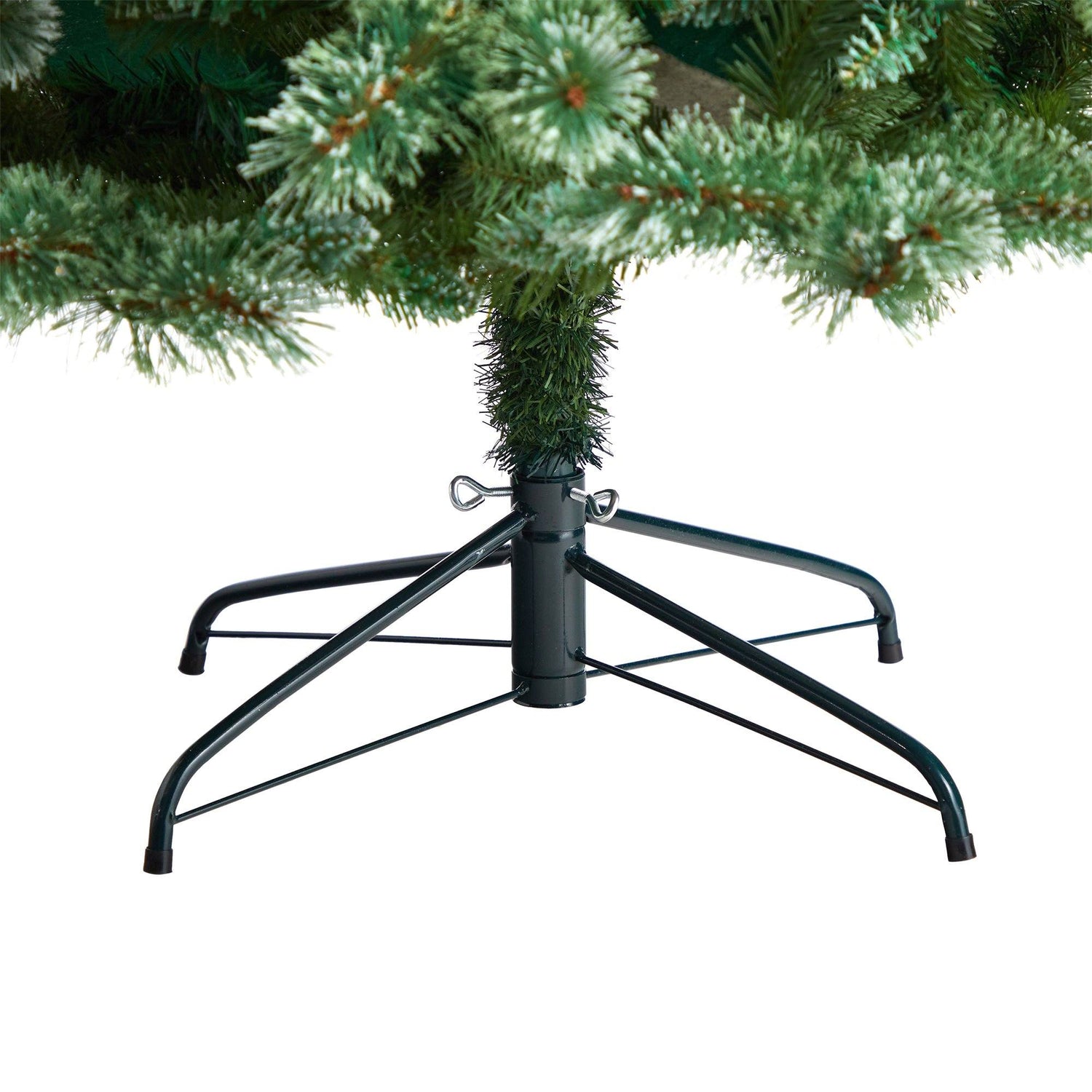 Create the ultimate holiday scene in your home or office with the help of this evergreen artificial Christmas tree; entirely maintenance-free, this realistic looking Christmas tree boasts a rich collection of pine foliage made up of 908 easy-to-bend branches to hang all of your favorite holiday ornaments. Arriving pre-strung with 600 clear LED lights to eliminate tangles and stabilized on a metal stand, this impressive 8’ tall Christmas tree will not only make holiday decorating a breeze but ensure your home is always holiday-dressed for years to come.