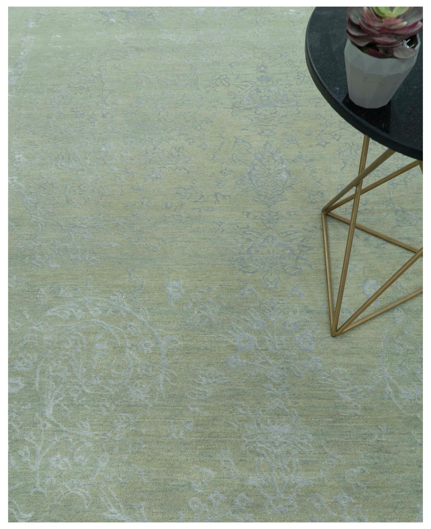 8X10 Fine Hand Knotted Green And Gray Modern abstract Design Wool and Art Silk Rug