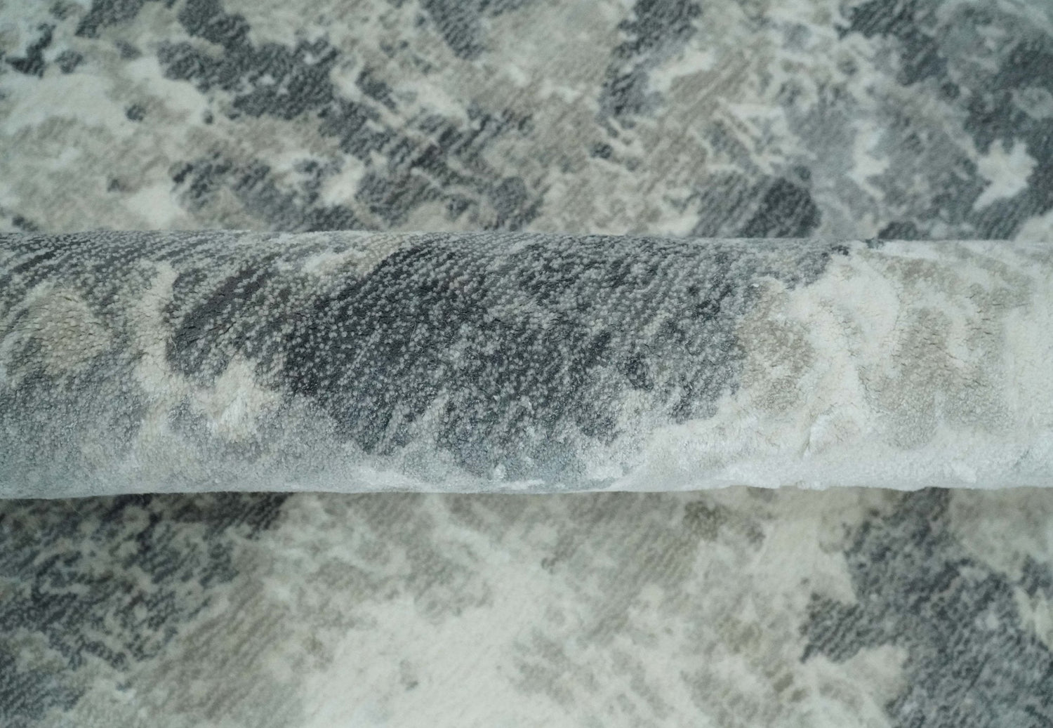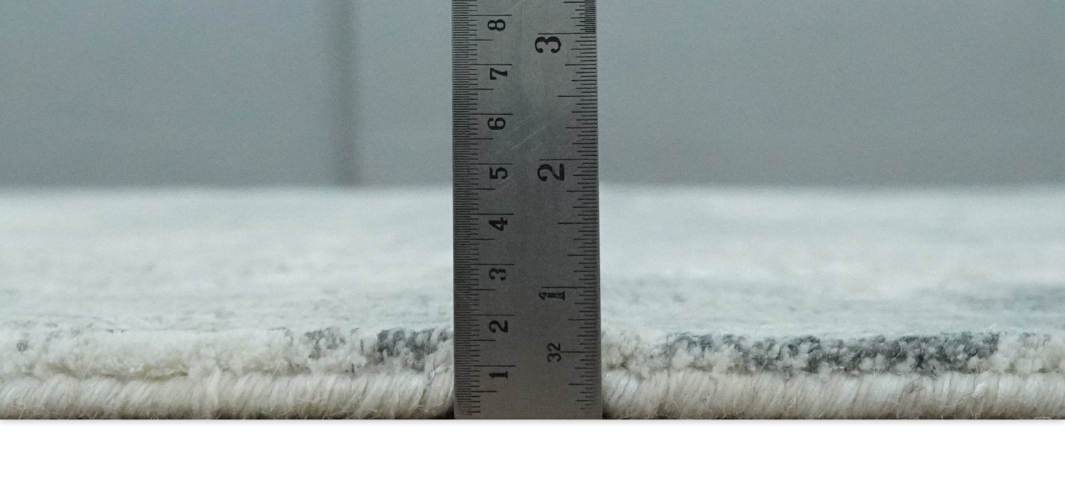 8x10 Ivory, Silver and Charcoal Modern Abstract Hand Loomed Blended wool and Art silk Area Rug