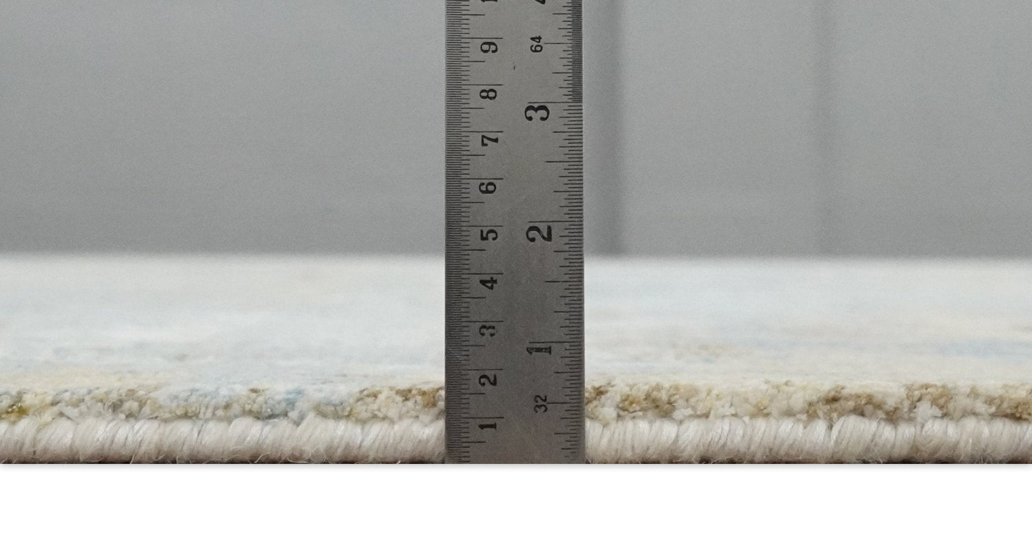 This specific rug is made in India, in the city of Bhadohi. Bhadohi is one of the biggest rug manufacturing cities. Carpet weaving in the region dates back to the 16th century during the reign of Akbar. The skilled artisans of Bhadohi have been carrying the rug-making tradition for centuries.
