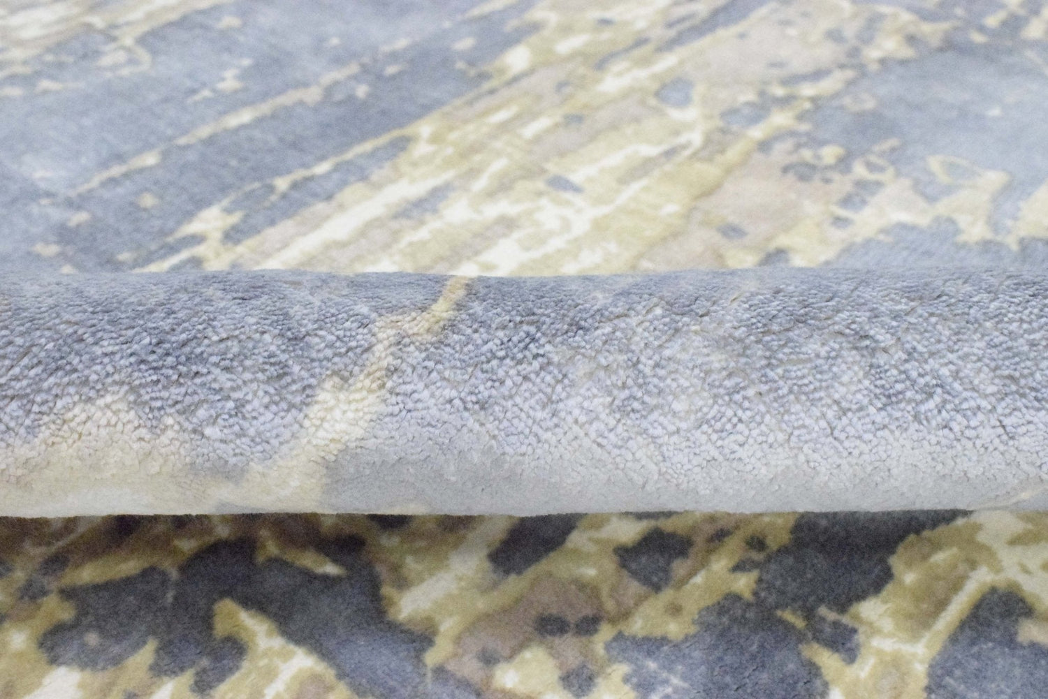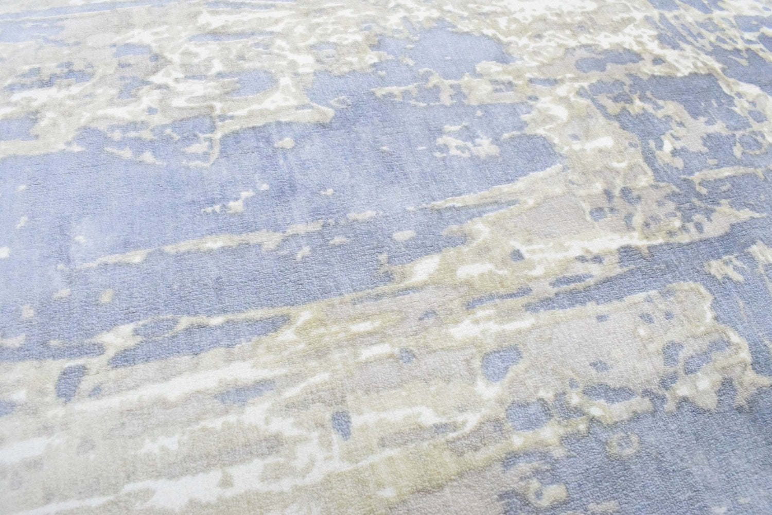 8x10 Rug, Blue and Brown Rug, Modern Abstract Hand loom Printed Viscose Area Rug