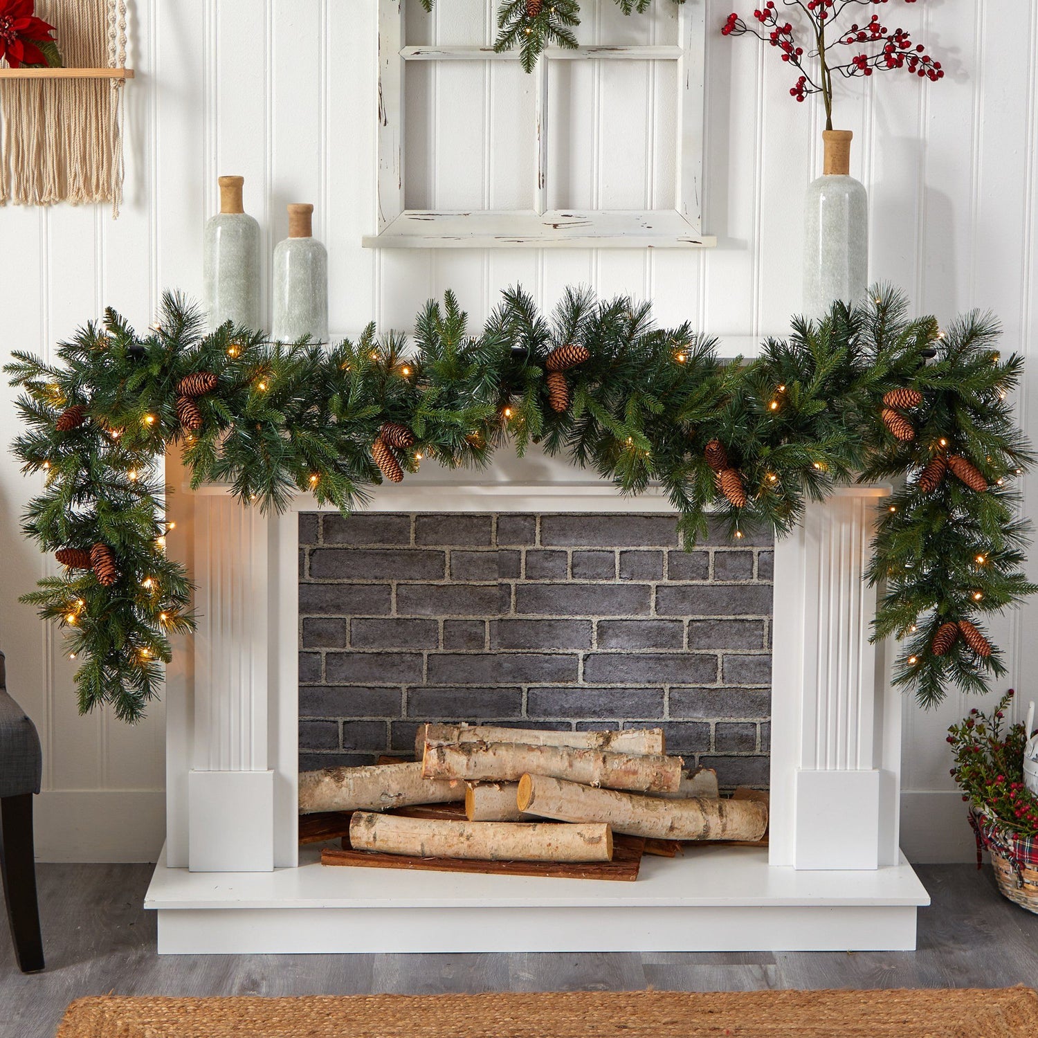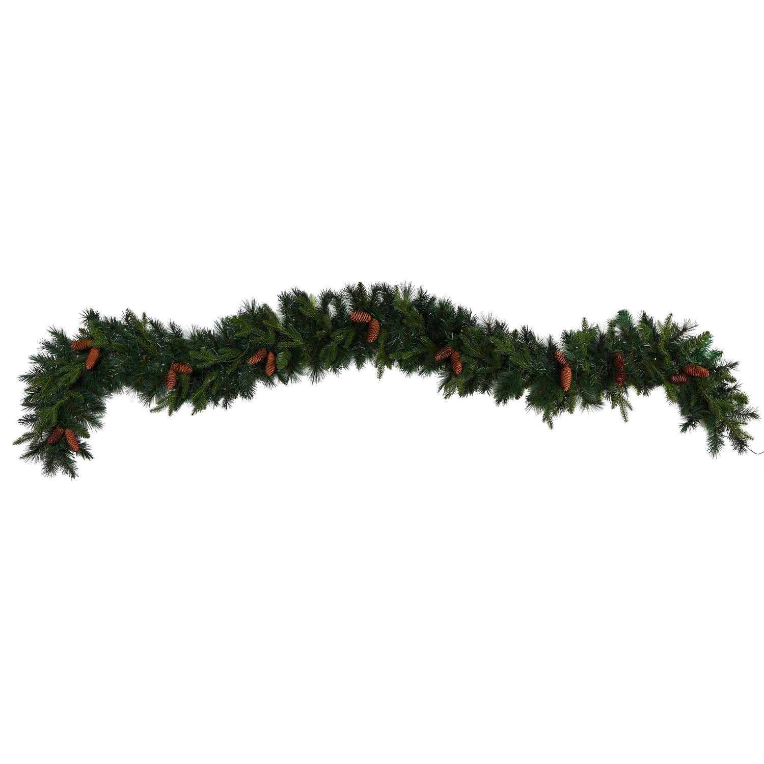 Create your mini Christmas wonderland with this Mixed Pines and Pinecones Christmas Artificial Garland. Inspired by nature, realistic-looking evergreens are accented by pinecones. Light up any corner of your home with the energy-efficient 70 LED lights; feel free to shape the 286 bendable branches and with a length of 9', house in any area. Add to a bed frame, mantel, or staircase.