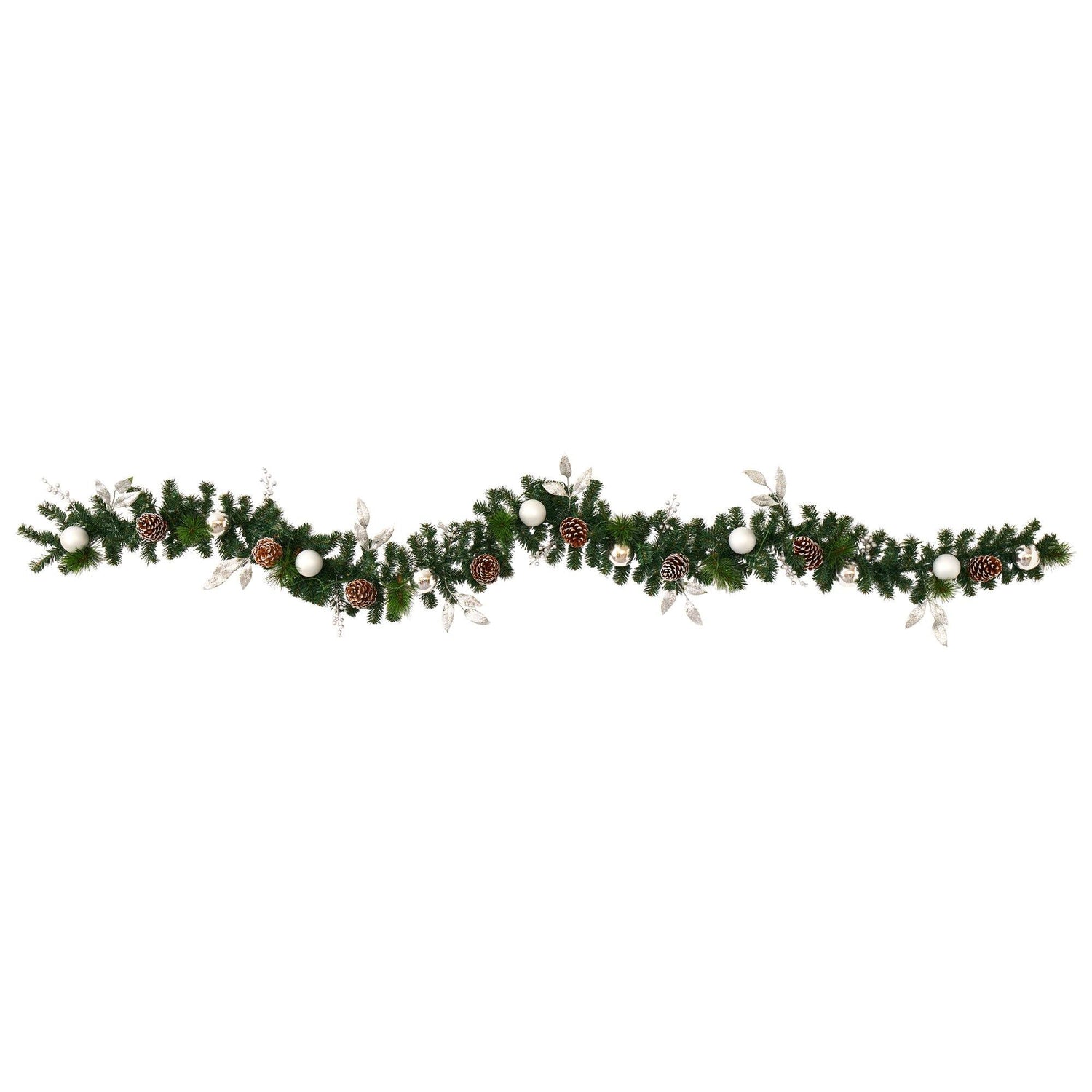 9’ Ornament and Pinecone Artificial Christmas Garland with 50 Clear LED Lights